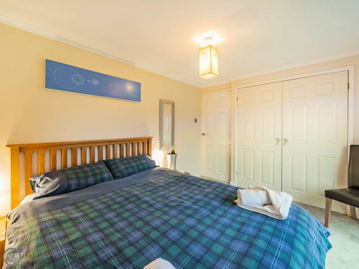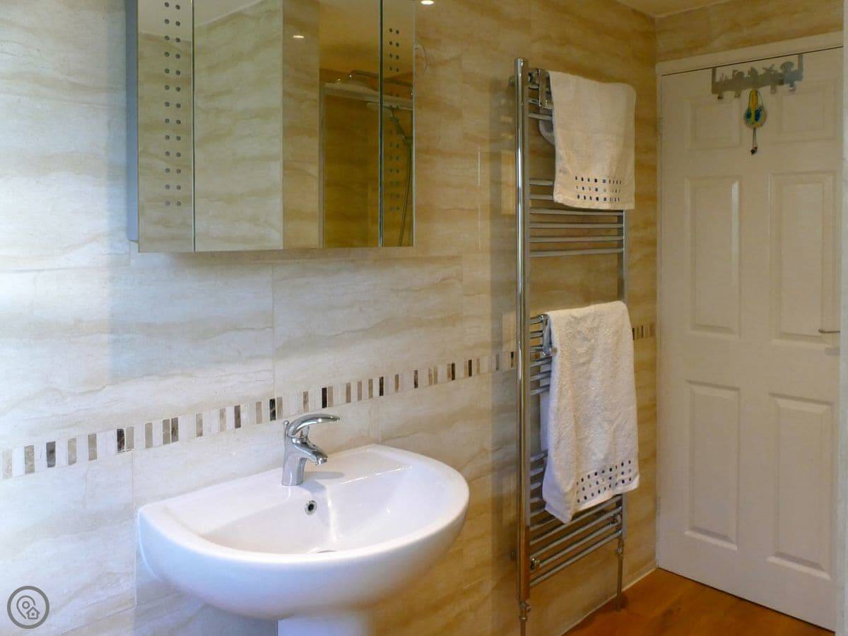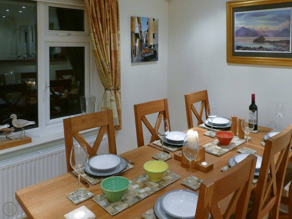 It sleeps six, has three bedrooms and one bathroom. It's got a 4 Star rating. The layout is a bit different. You come in downstairs into a boot room, which is handy. The main living space is upstairs to get the views. The kitchen and living room are on that first floor. The bedrooms are up another small flight of stairs at the back, overlooking the garden.