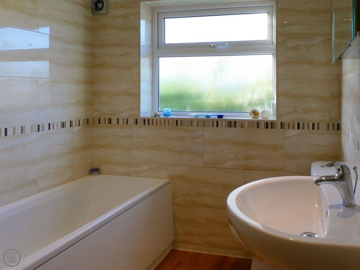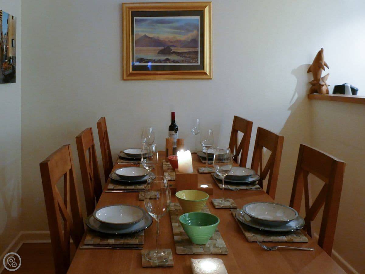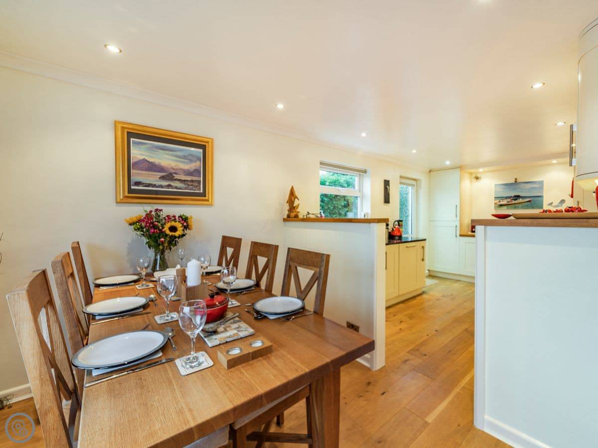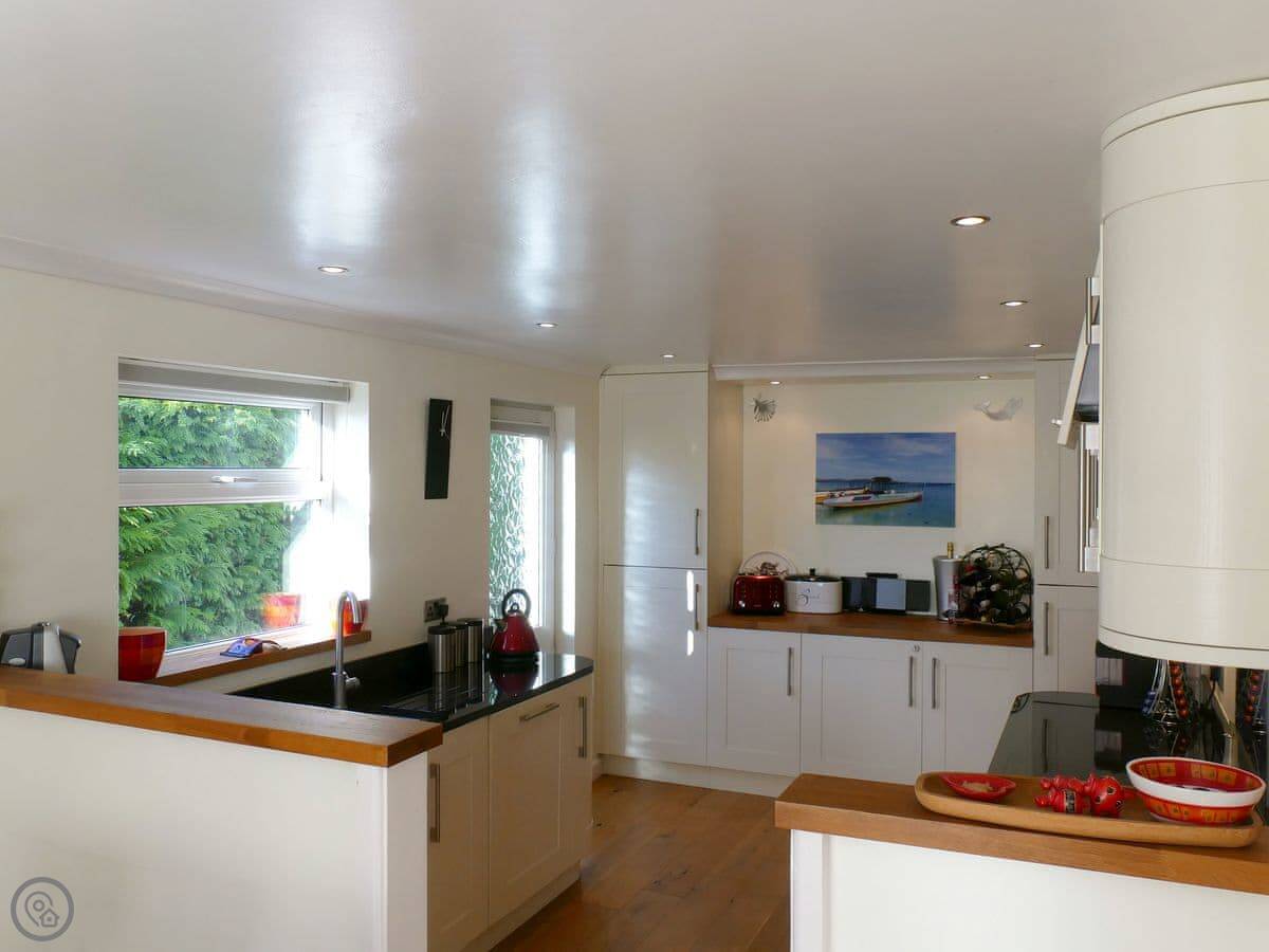 It sleeps six, has three bedrooms and one bathroom. It's got a 4 Star rating. The layout is a bit different. You come in downstairs into a boot room, which is handy. The main living space is upstairs to get the views. The kitchen and living room are on that first floor. The bedrooms are up another small flight of stairs at the back, overlooking the garden.