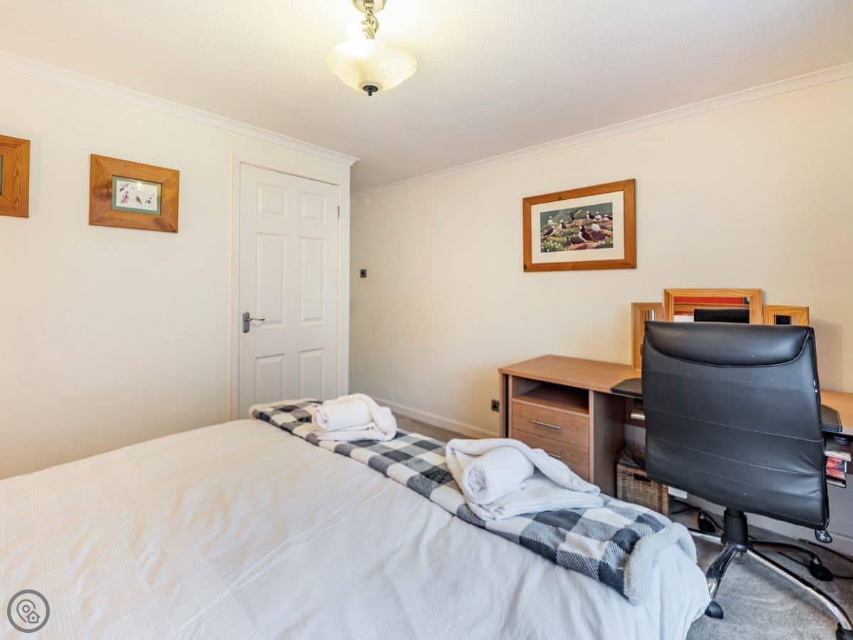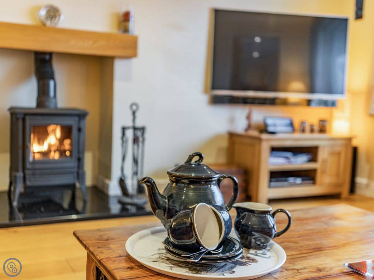 The garden is yours to use. There's parking on the drive. It's got a woodburning stove, wifi, a washing machine, and a dishwasher. Bedding and towels are included. You can bring up to two dogs.