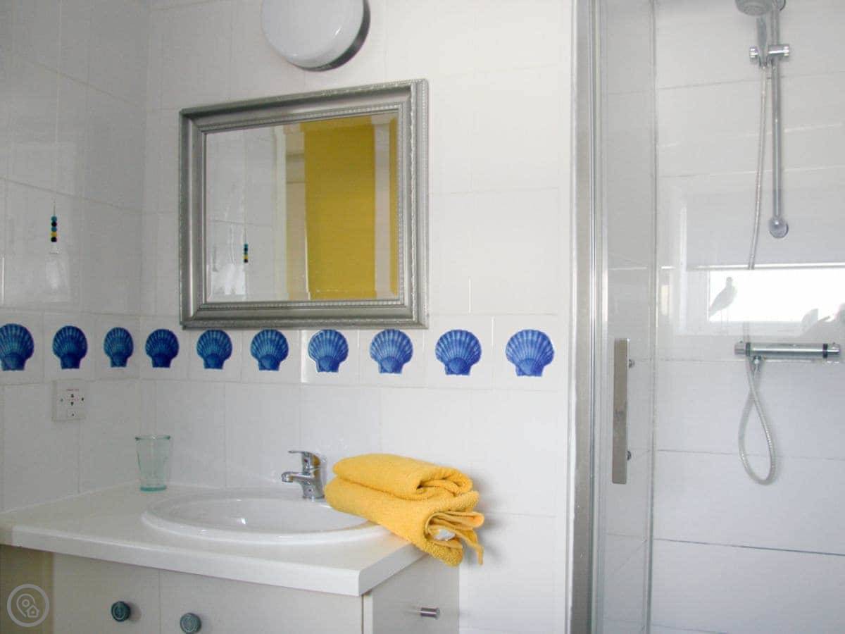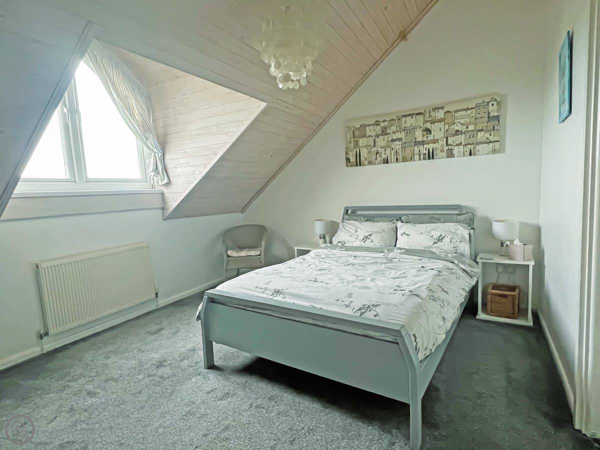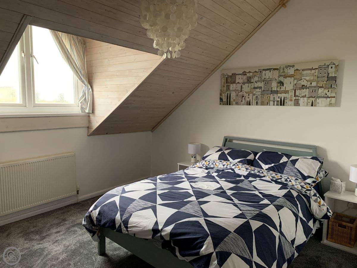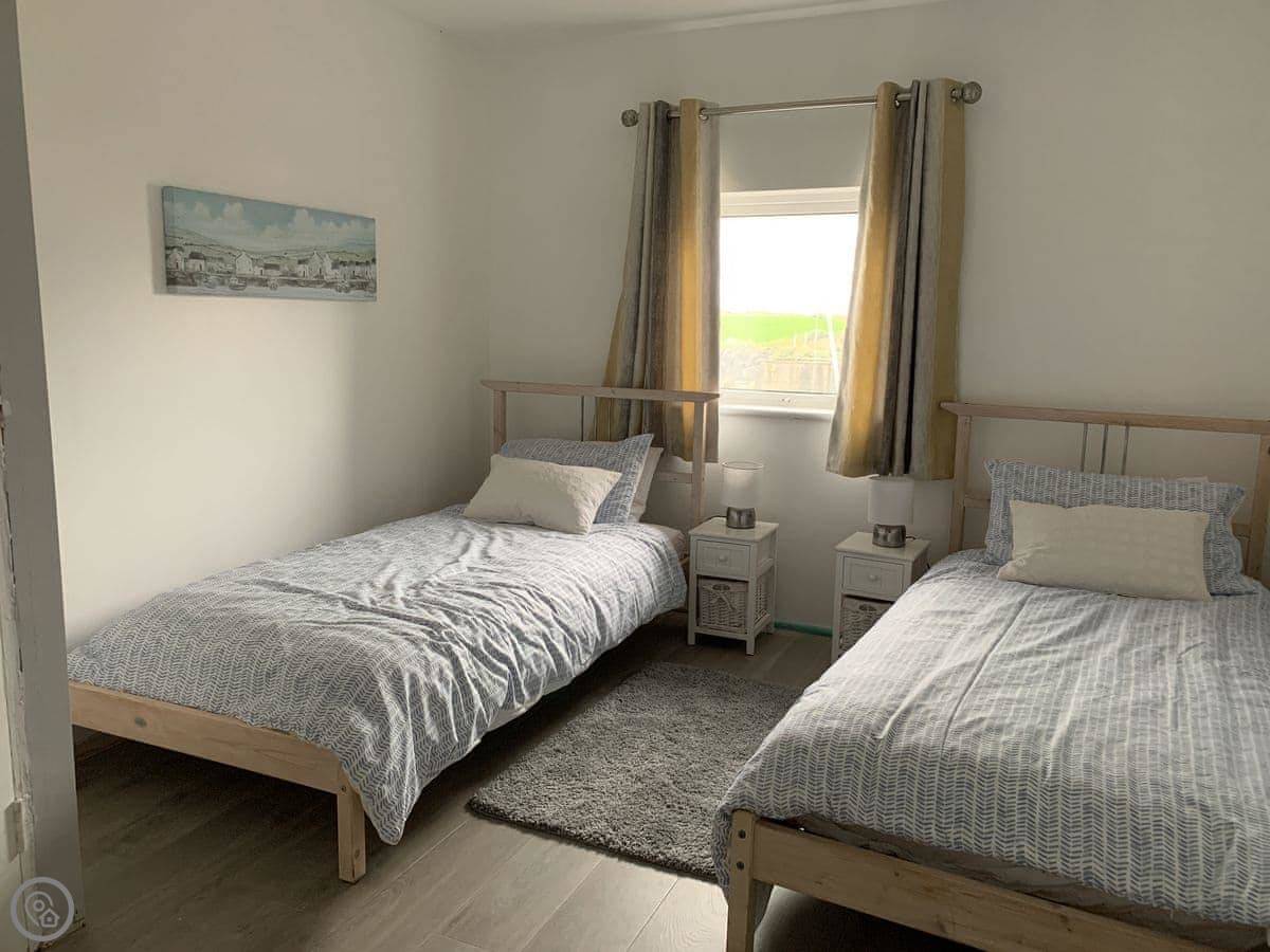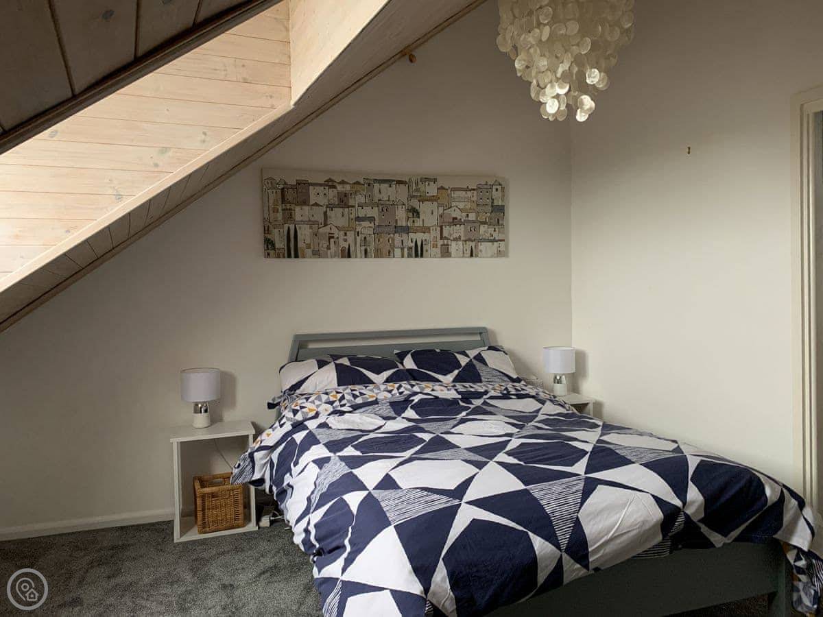 It sleeps four. Two bedrooms, both with their own bathrooms. The rating is 4 Star, so it's comfortable and well equipped. The stairs are steep and a bit narrow. That's just how it is.