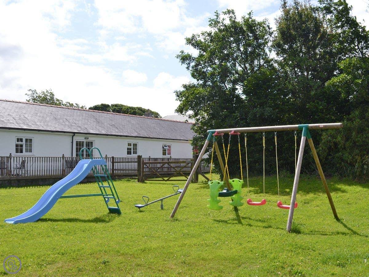 You've got a deck out the back with a table and chairs. It looks out over the fields. The place is set in 14 acres, so there's plenty of space to wander. There's a shared play area for kids. We allow two well-behaved dogs.
