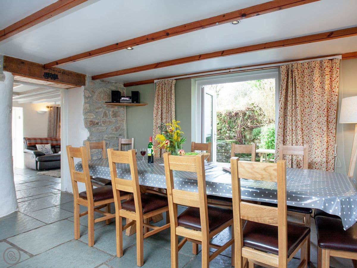 The Farm House is ours, but it's a holiday let now. It's in Halwin, which is inland, about halfway between the north and south coasts of Cornwall. It's a detached stone farmhouse. You get the whole house and garden to yourselves. The garden's big, private, and has a patio area.