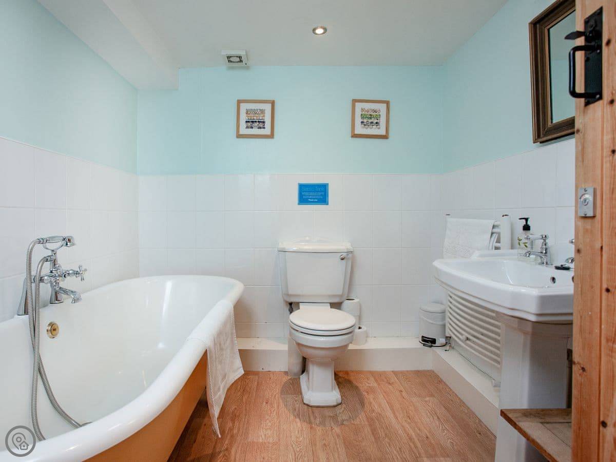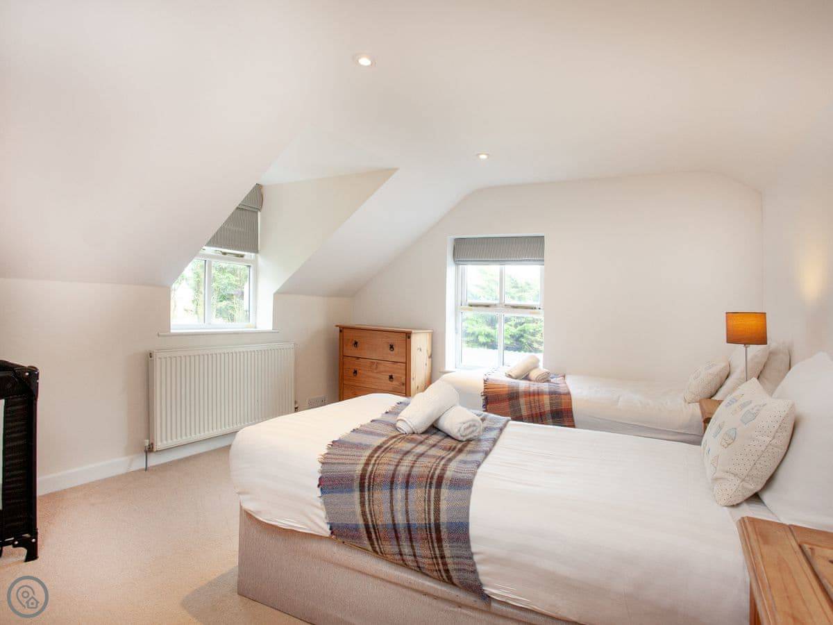You get all the usual stuff: WiFi, TV, washing machine, dishwasher. Bedding and towels are included. There's parking right there. We can take up to three dogs. There's a cot and highchair if you need them. There's also a play area for kids on the farm.