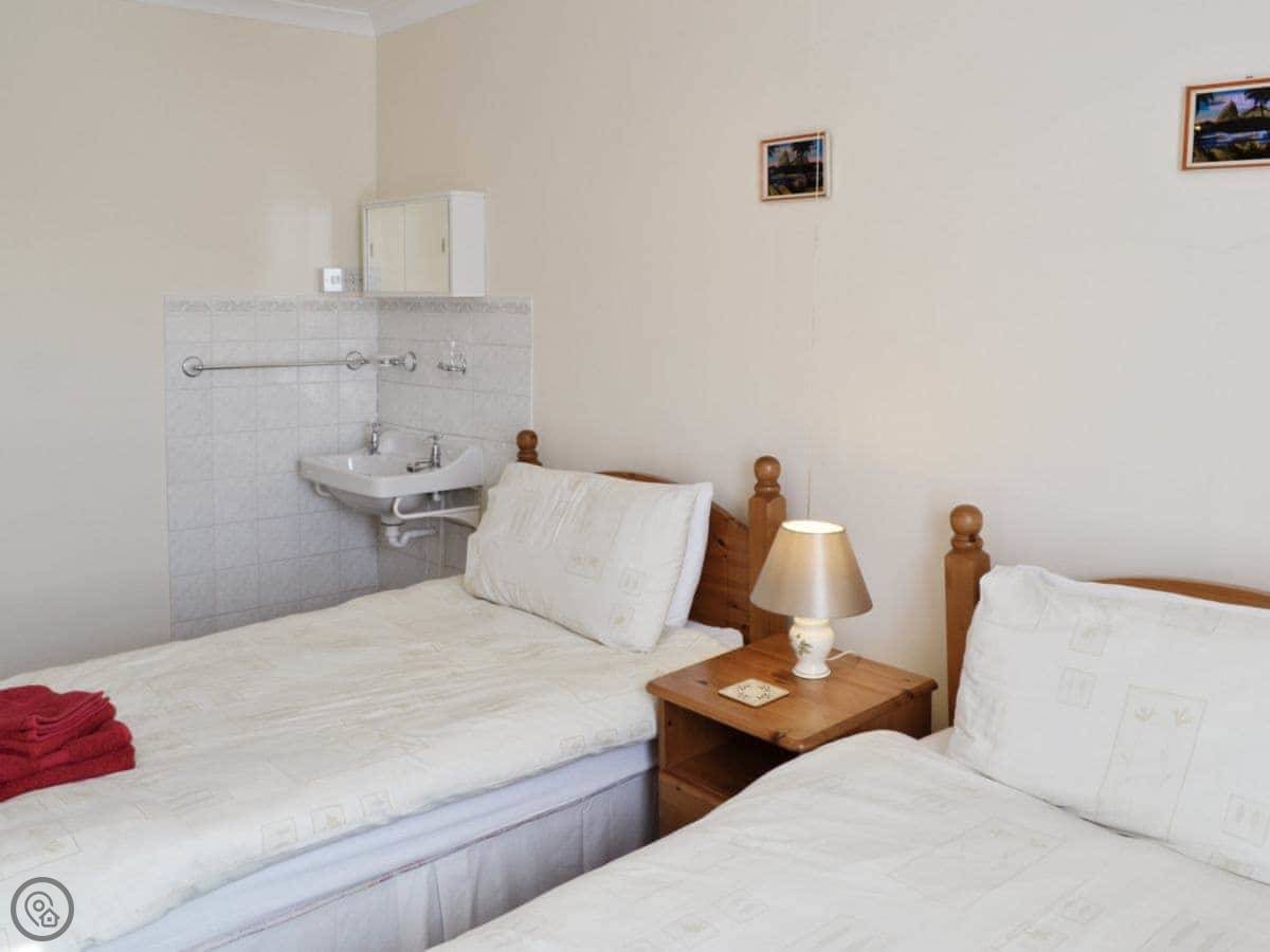 It sleeps four in two bedrooms. One bathroom. It's a 3 Star, so it's clean and everything works, but it's not a show home. The stairs are standard for a cottage.