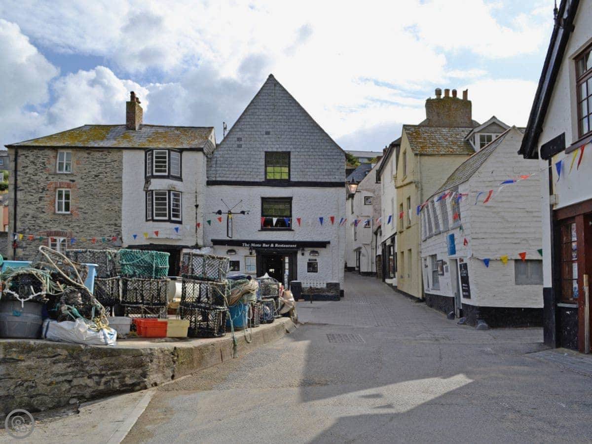 You're a few steps from the South West Coast Path. The harbour is downhill, and it is a steep hill back up, so you need to be okay with that. There are shops, pubs, and restaurants within a few minutes' walk. The nearest is about 100 yards.