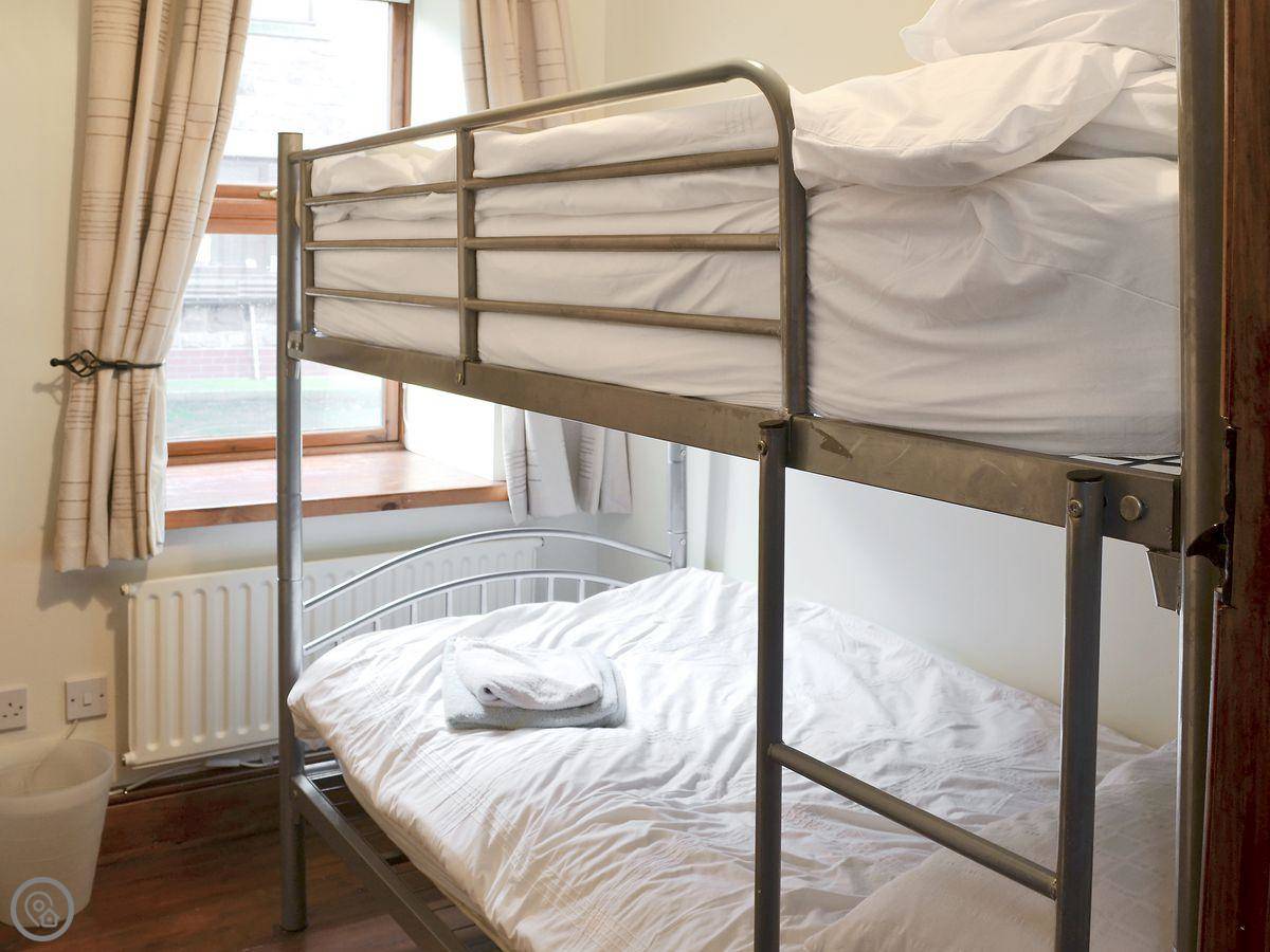 It sleeps four. Two bedrooms upstairs, one bathroom. It's got a 3 Star rating, so it's comfortable and clean. There's a woodburner in the living room, which is good for cooler nights. The stairs are cottage stairs, so they're a bit steep.