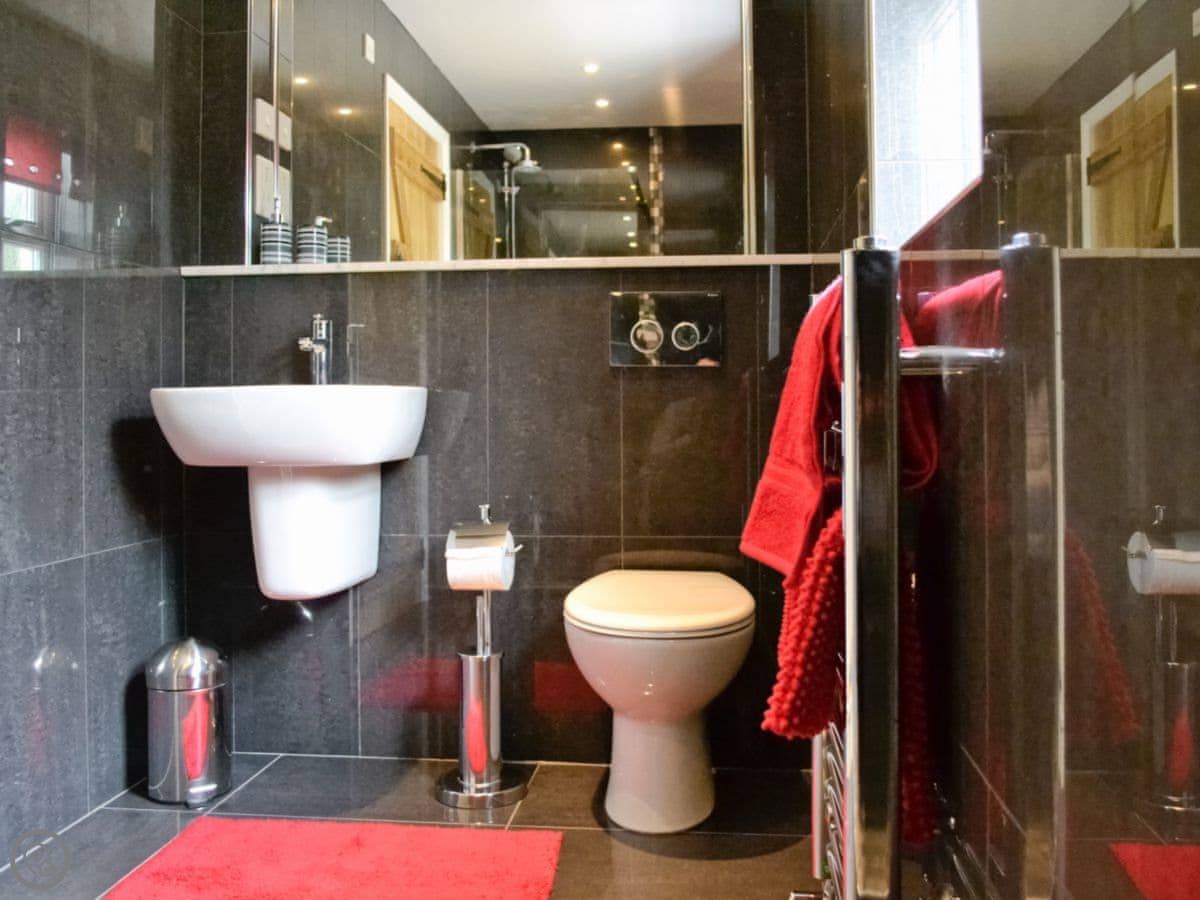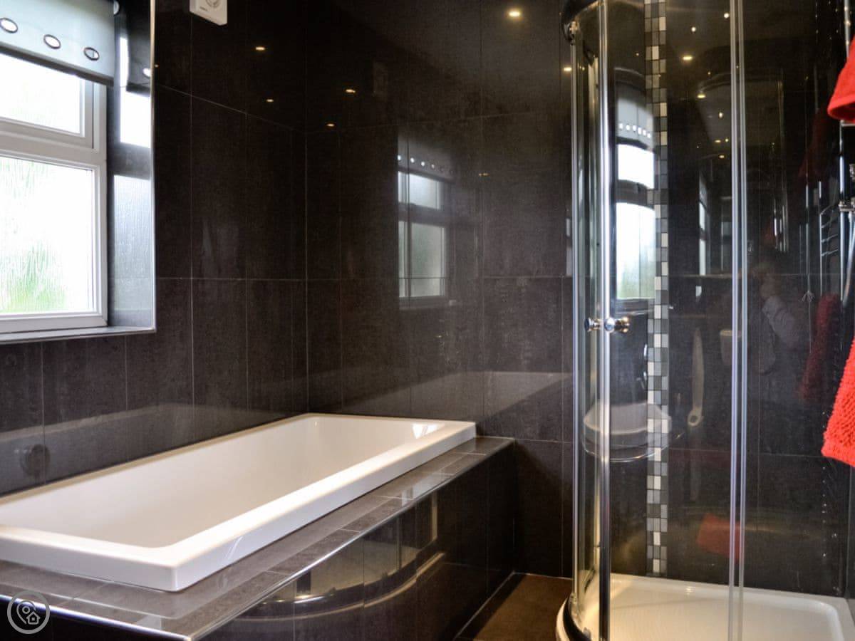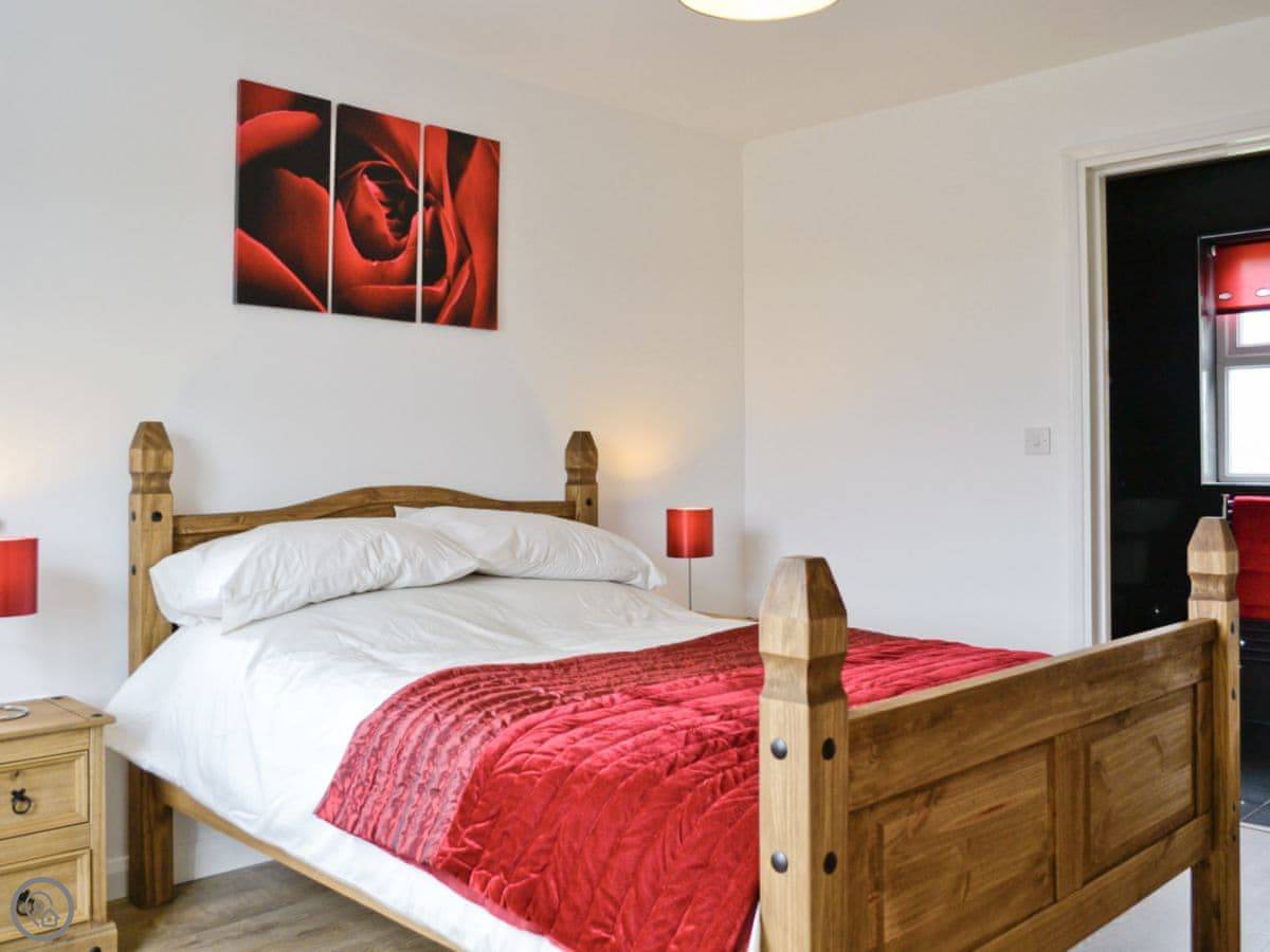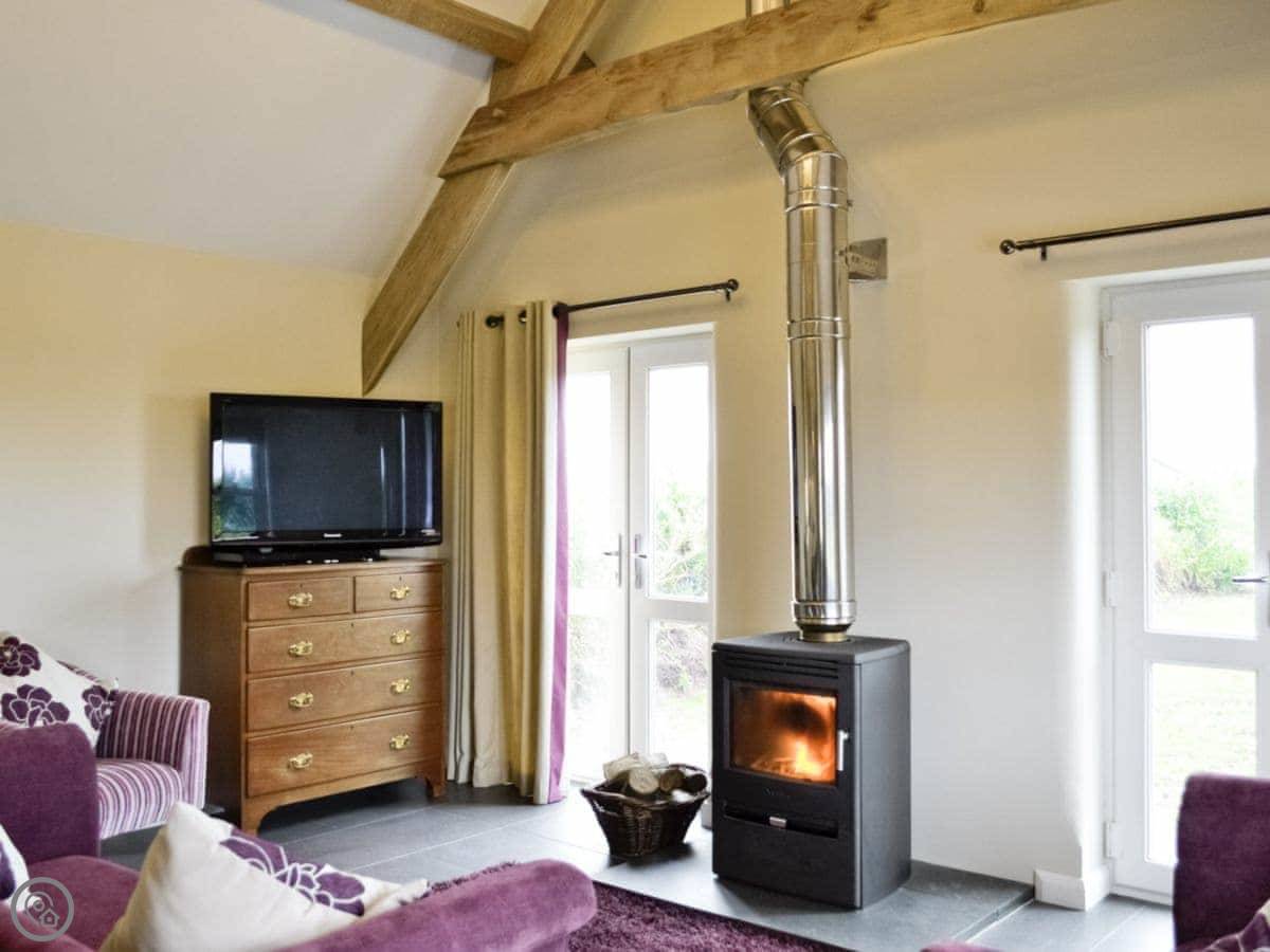 It sleeps seven people. Four bedrooms, two bathrooms. It's got a 4 Star rating, so it's well-equipped. They've kept some of the old oak beams inside, which look nice. There's a wood burner in the main living area, which is open-plan with the kitchen. That keeps the place warm.