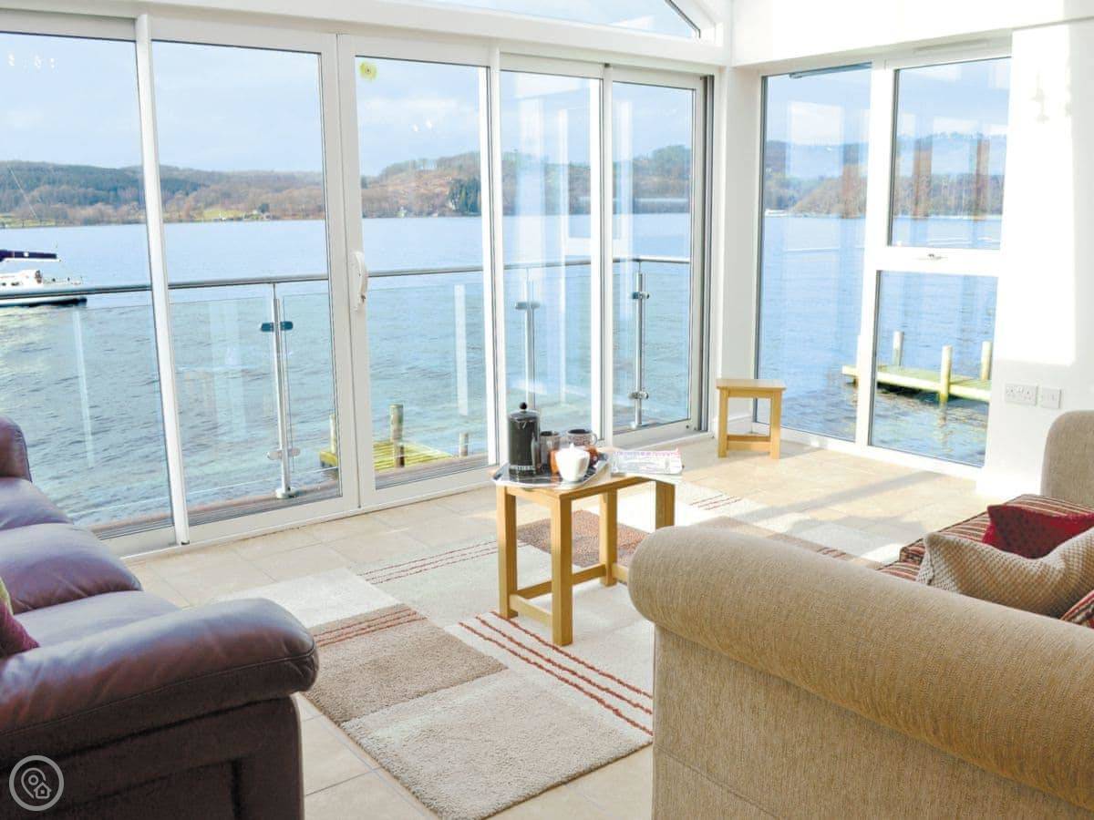 Spout Crag Boathouse is one of three boat houses situated in a superb, secluded position sitting over the water on the shores of Lake Windermere. Not only do they provide an idyllic romantic getaway and excellent walking base but they also provide the ultimate holiday location for enjoying sailing or water sports on Windermere with direct access to the lake, small pier and boat mooring facilities with each property with a boardwalk at the side. Spout Crag Boathouse is tastefully and comfortably furnished throughout, boasting a light and airy living room opening on to a large balcony overlooking the lake and surrounding fells.