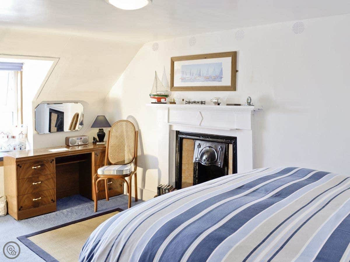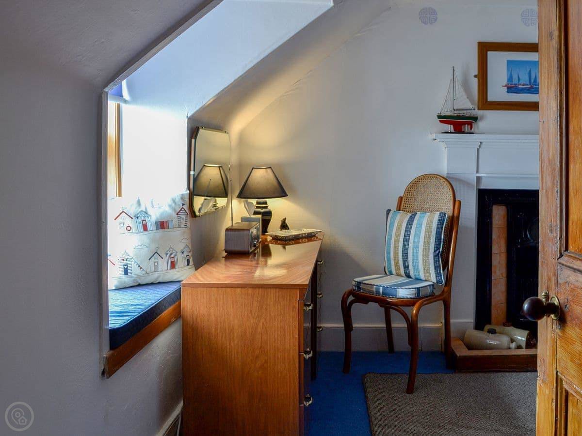 It sleeps four. There's a cot and a stairgate if you need them. Parking is for one car on site, but you can also park on the seafront road.