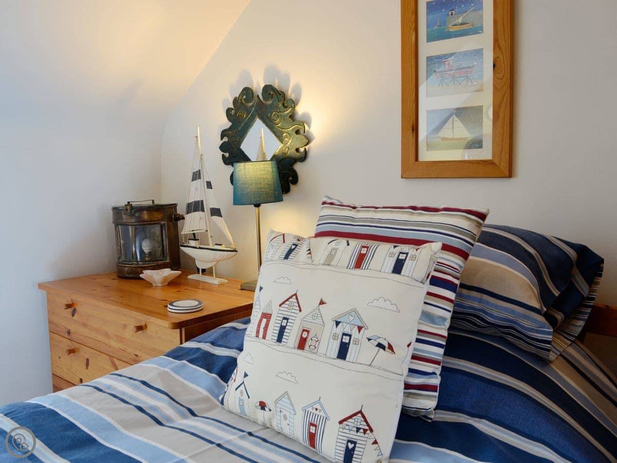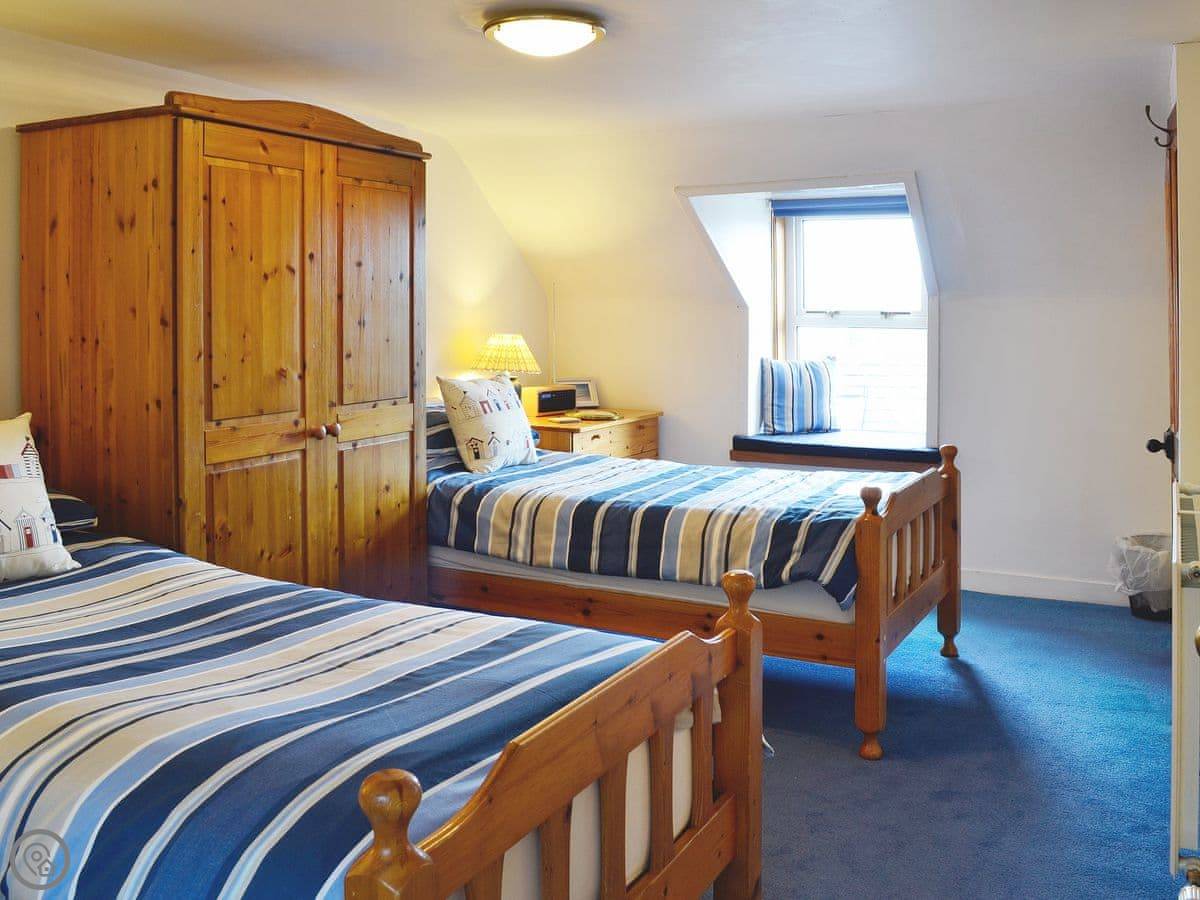 It's a 4 Star place, so it's comfortable and well-kept. There are two bedrooms and two bathrooms, which is handy. Both bathrooms have showers. One bedroom has twin beds and you can see Seal Island from the window. The main bedroom and the decked area outside have a view of the sea.