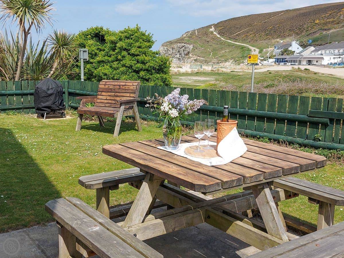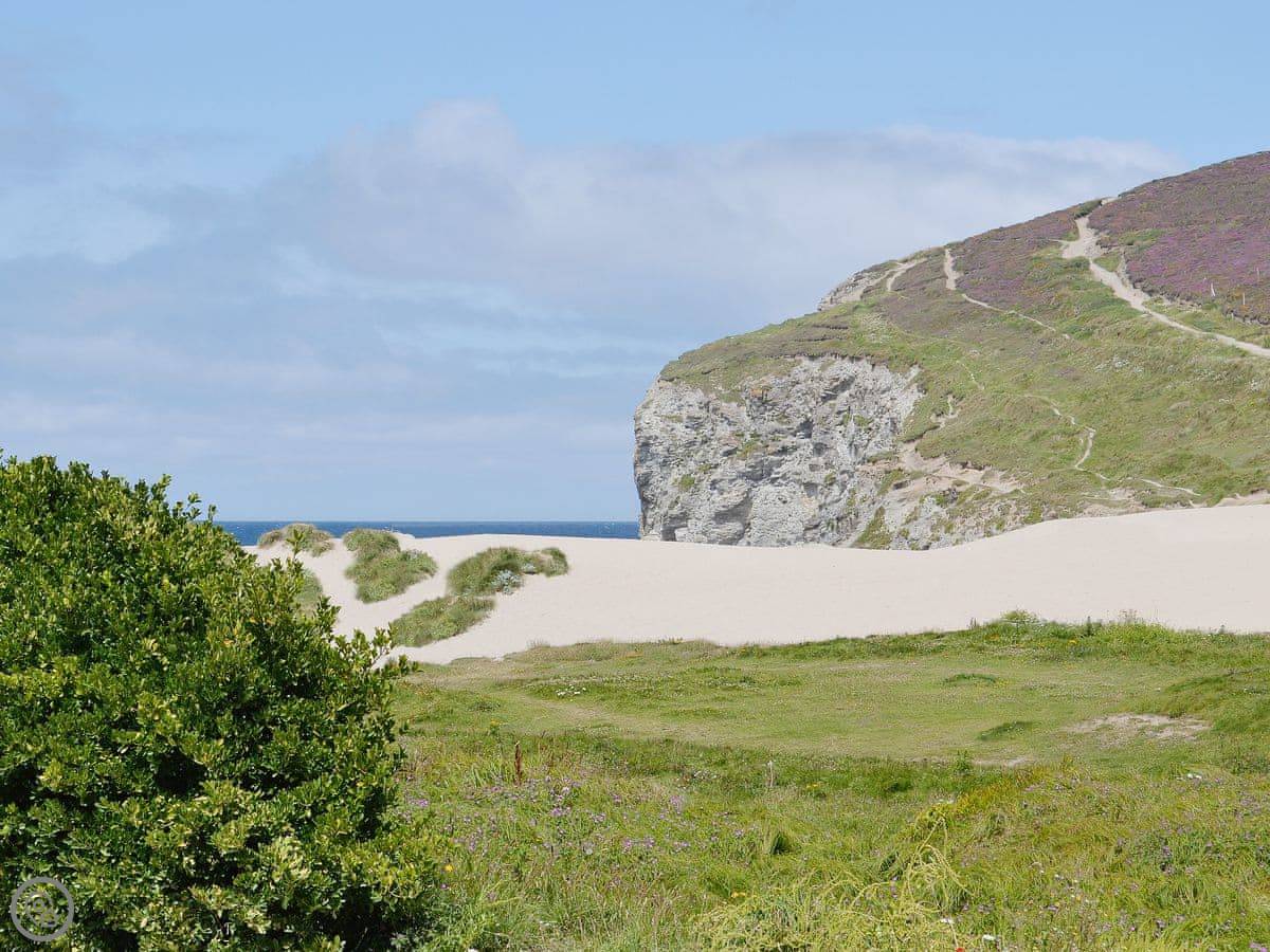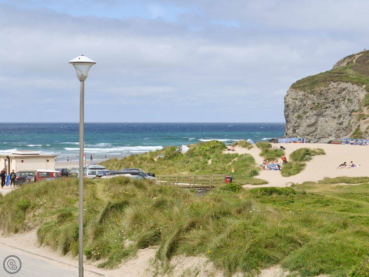 This semi-detached holiday home overlooks the award winning beach, which is less than 70 yards. The beach is backed by dramatic cliffs, with stunning views from the Cornish Coastal Path which hugs the tops of the cliffs. Porthtowan has a children’s play area, sand dunes, beach bar, surf school and a local pub. Truro, with its theatre, shopping and cinema, and St Ives are easily reached. Porthreath, a short drive away, is the start of the Coast to Coast Cycle Path. Bike hire, horse riding, golf, surfing and kayaking are all available locally. Shop 200 yards, pub and restaurant 100 yards.