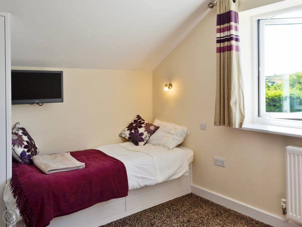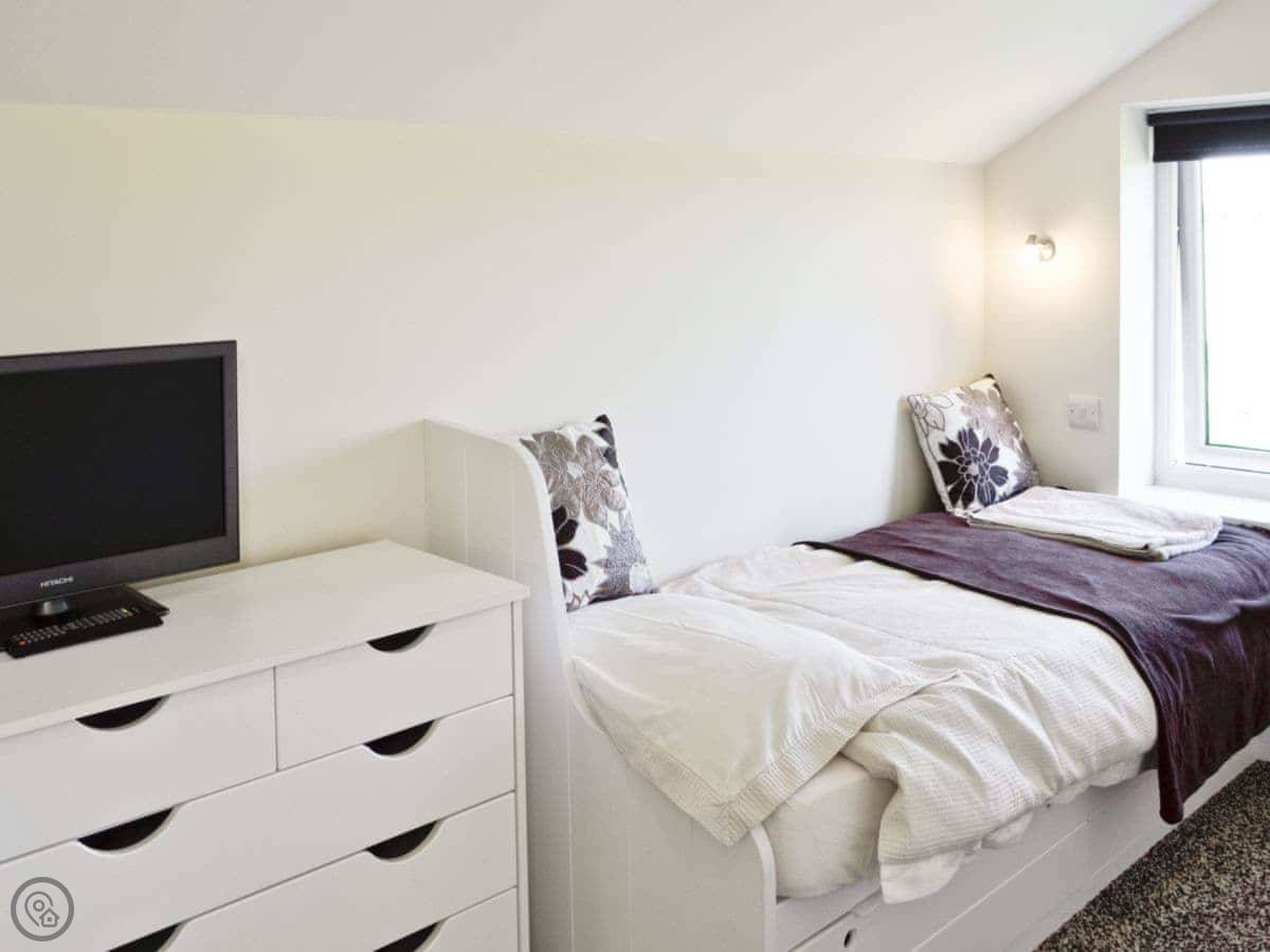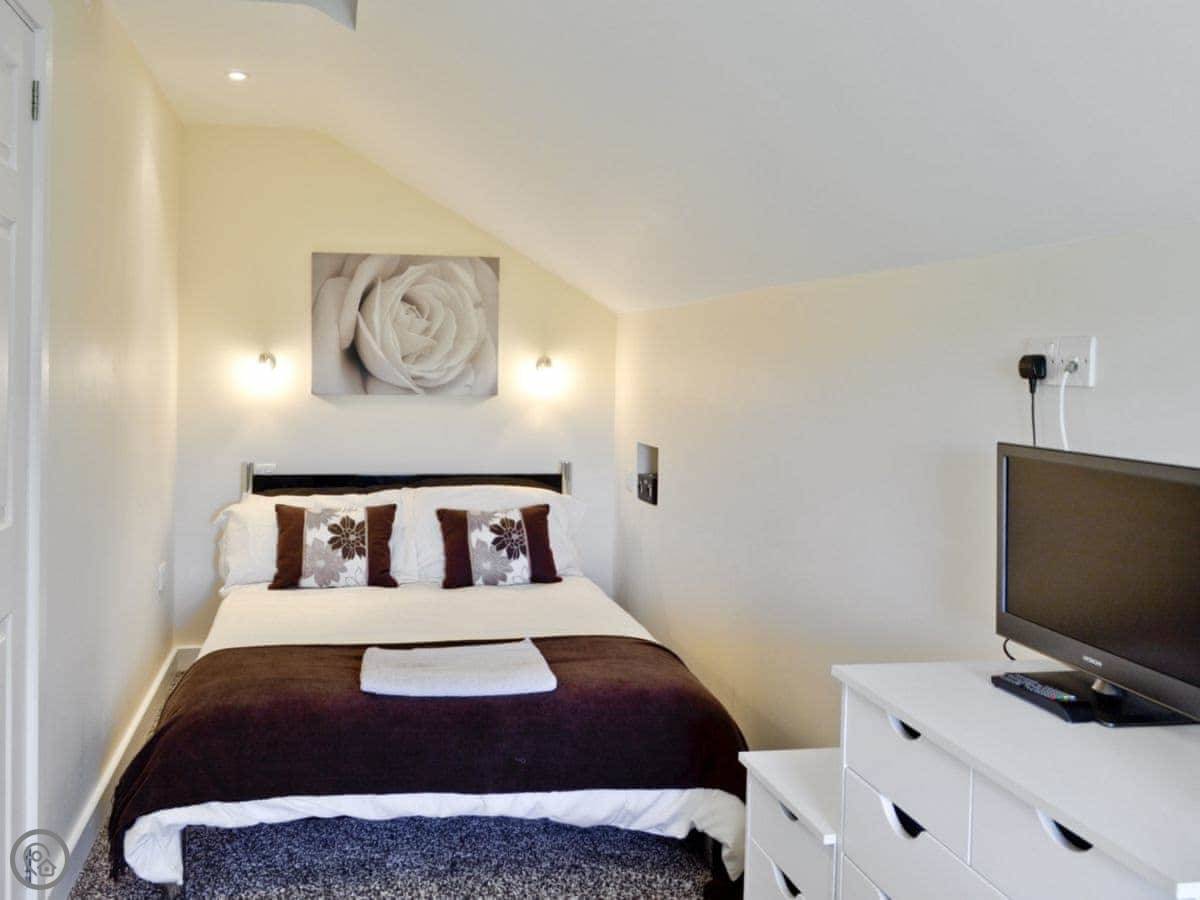 It's detached, so you're on your own, though our house is right next door. We're around if you need anything, but we leave you to it. Sleeps four, two bedrooms, each with its own bathroom which is handy. It's got a 4 Star rating. It's comfortable, clean and modern. The garden is enclosed with a patio area and a barbecue.
