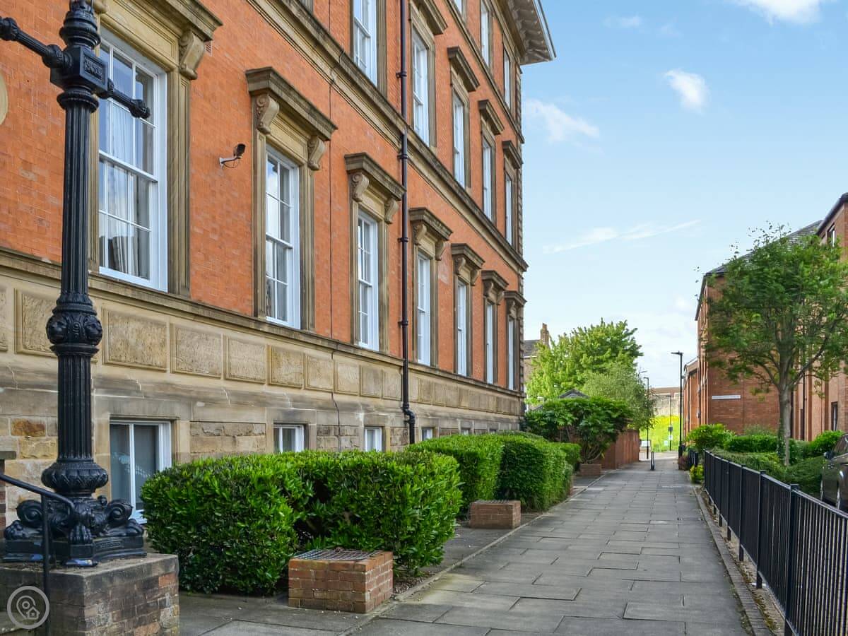 County House Apartment is in York, a few minutes' walk from the city walls near Monkgate Bar. It's a first floor flat, so you go up stairs to get in.