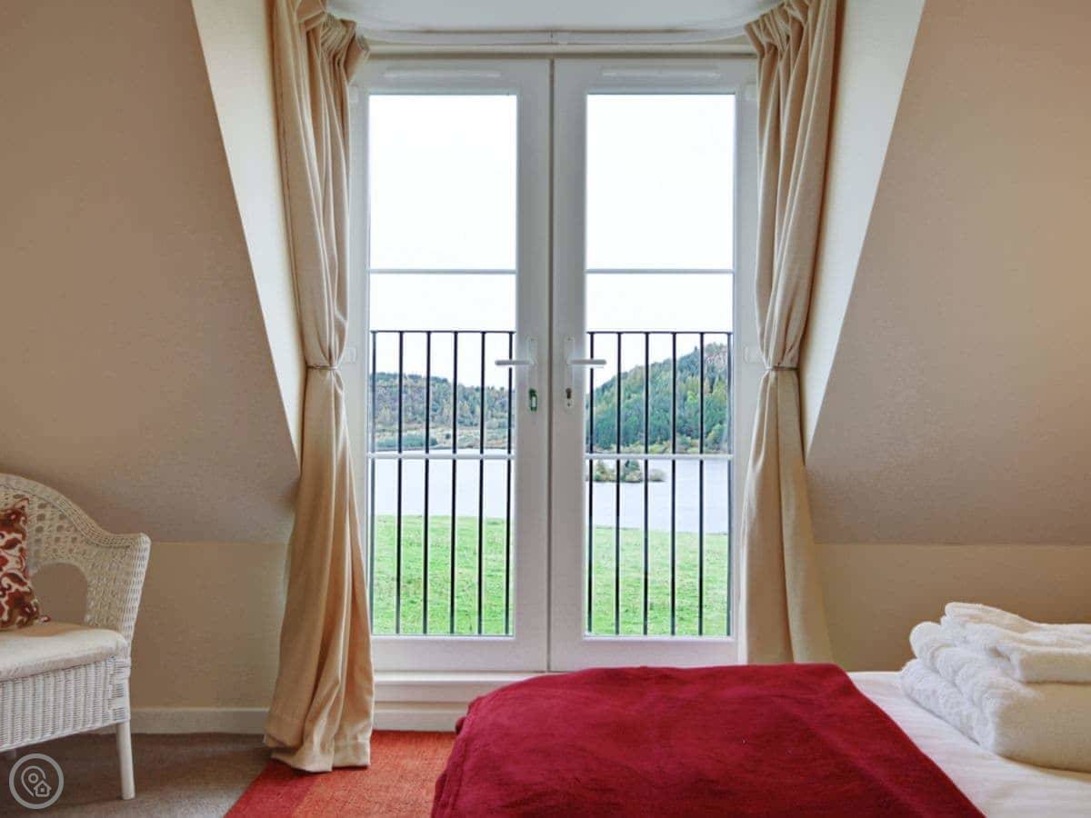 You're looking right out over a big private loch, and ospreys do fish there in season. The view is across the water to these high cliffs on the other side. It's quiet.