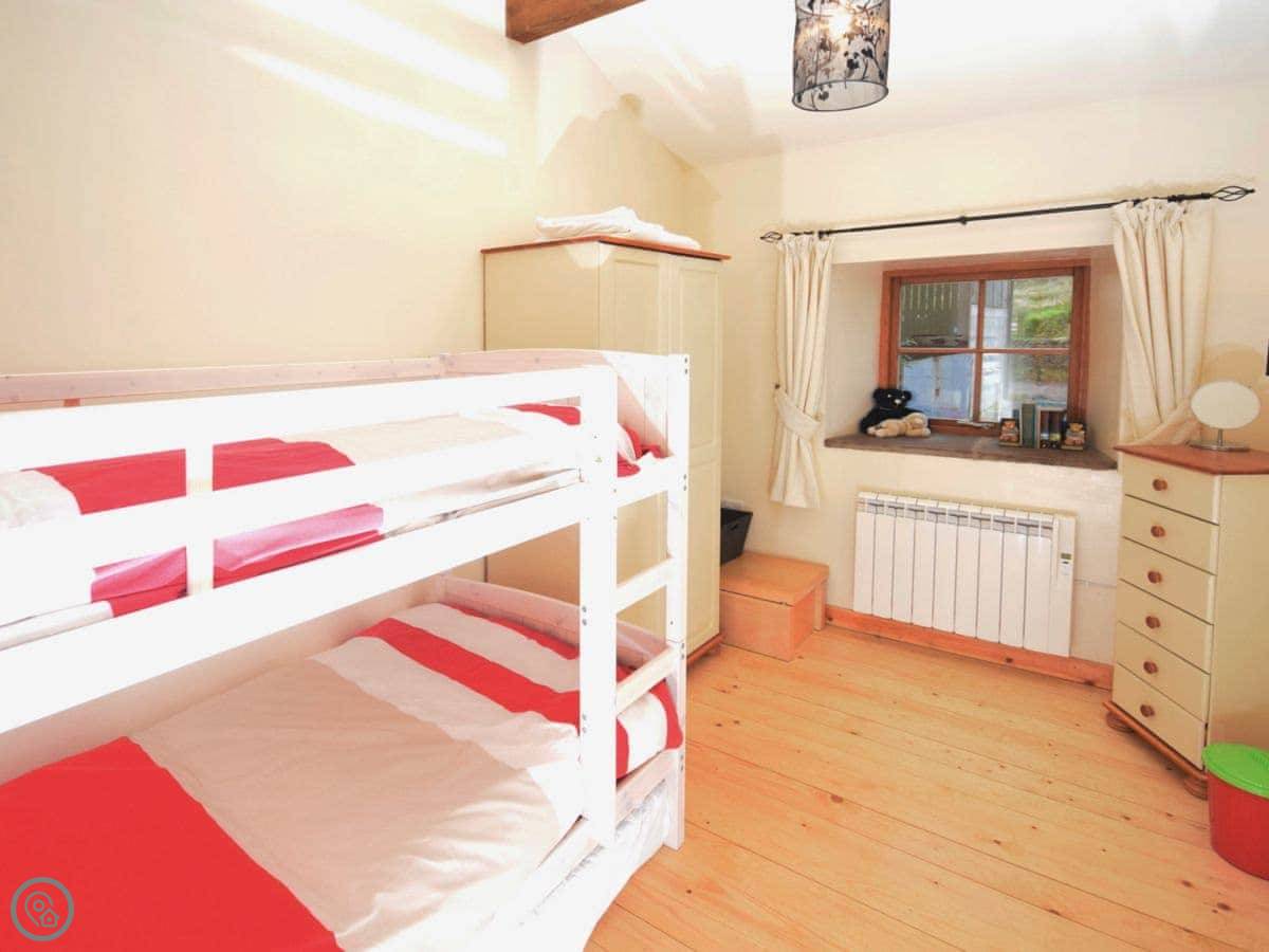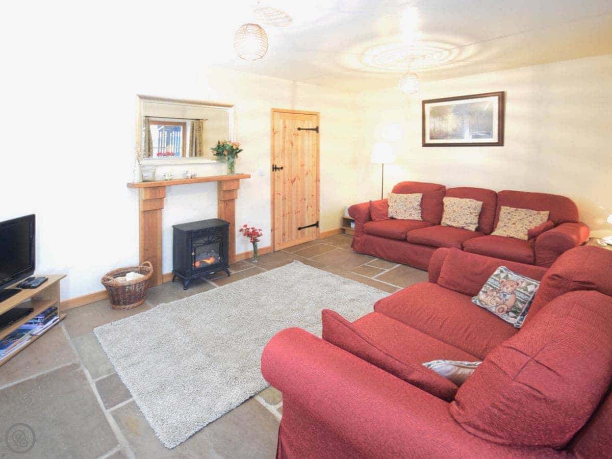 The cottage is semi-detached, joined to another holiday let called The Barn. You have your own garden with a barbecue. It’s a working farm, so you’ll see sheep. There’s parking right there.