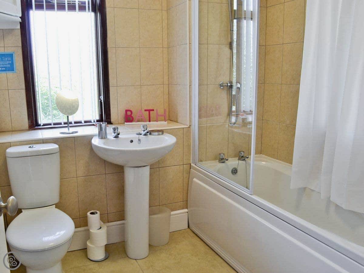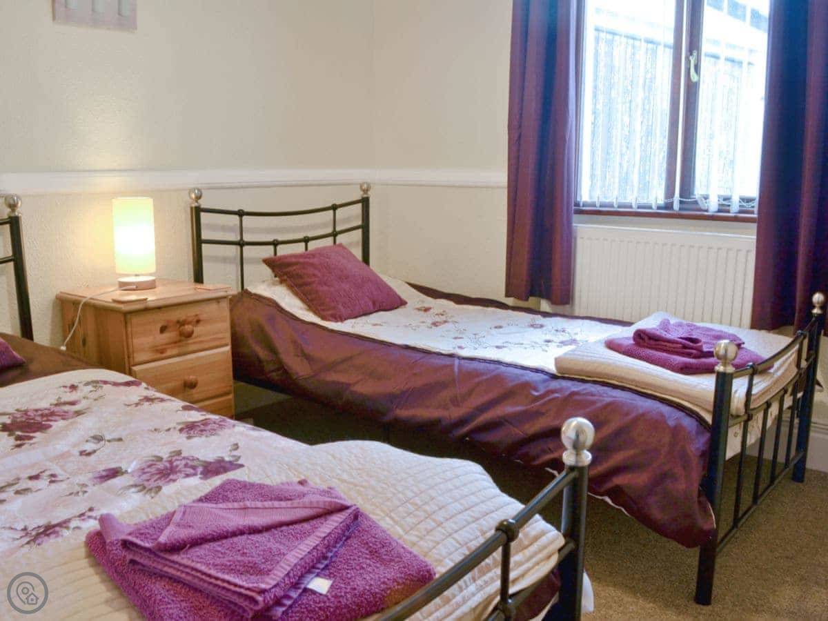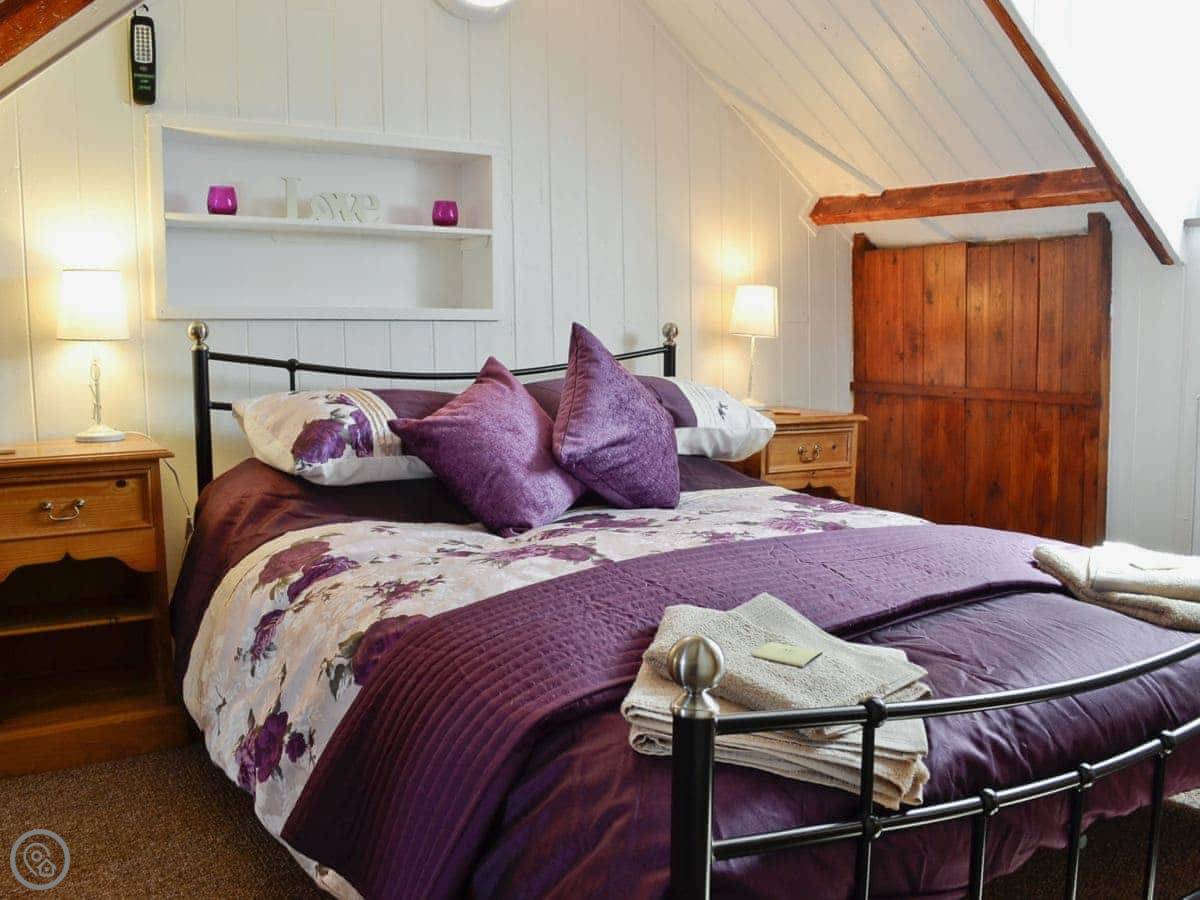 The house sleeps six, in three bedrooms. There's one bathroom. It has a 4 Star rating, which means it's well-equipped and comfortable. The stairs are open and steep. They are cottage stairs. There's a stairgate at the top.