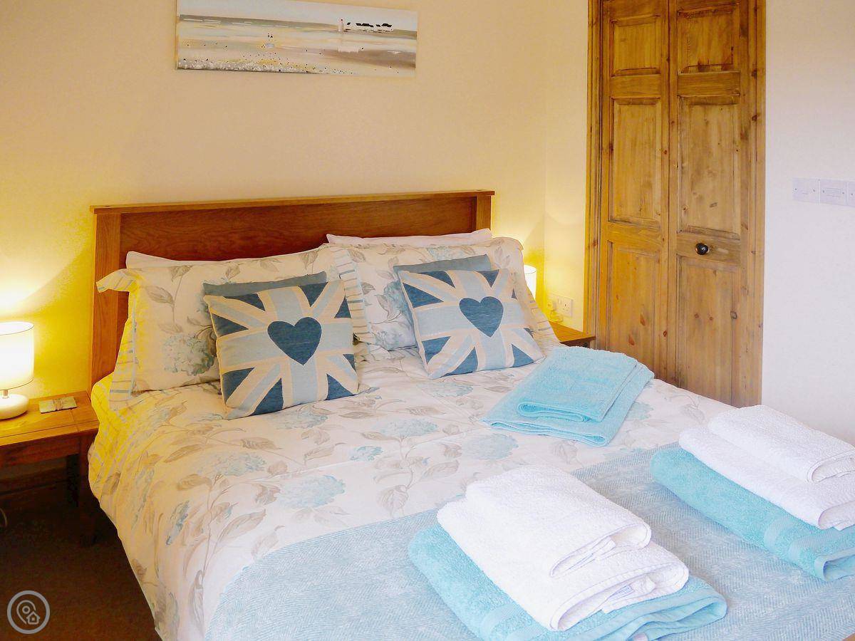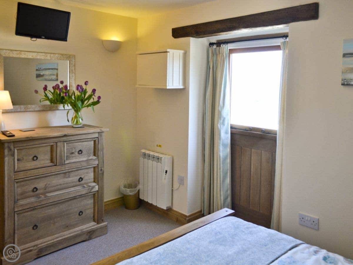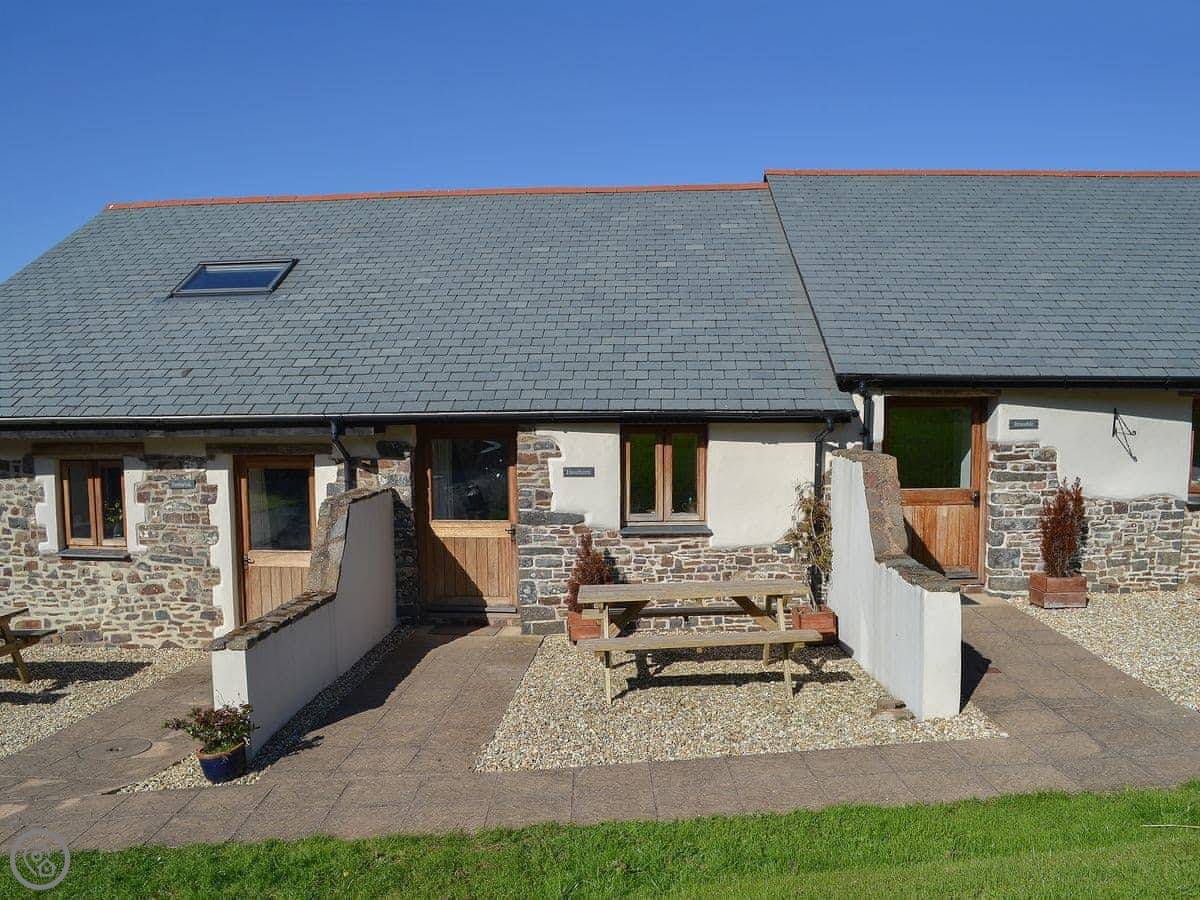 This is Hawthorn. It's one of three cottages on the farm here in Hartland. It's for two people, one bedroom, one bathroom. It's got a 5 Star rating, which means it's well finished and comfortable. The garden is yours, and it's enclosed, so it's good for dogs.