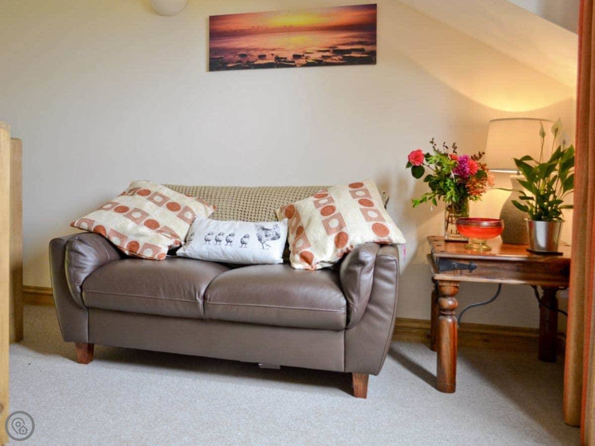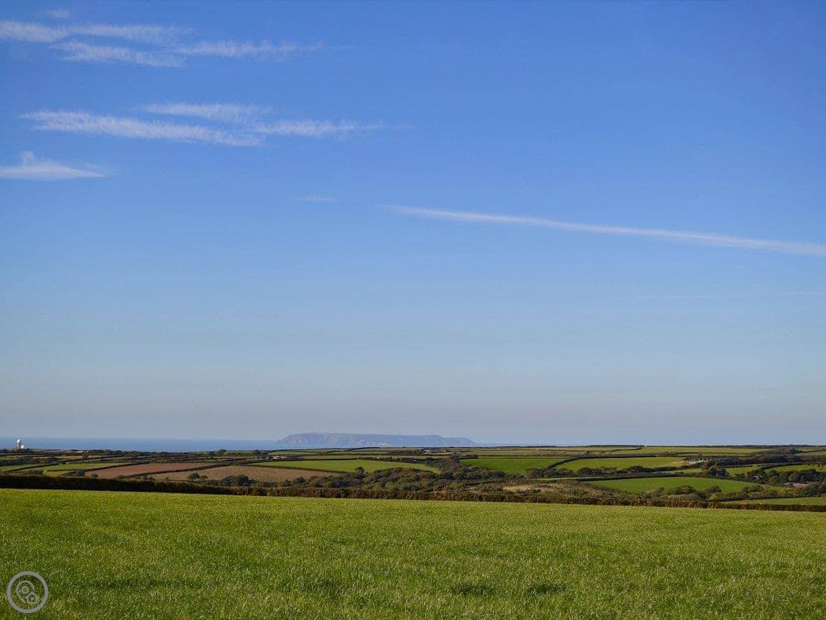You're on a working farm. There are horses, donkeys, sheep, and chickens about. The view from the cottage is over the fields towards the coast. You can see Lundy Island on a clear day.