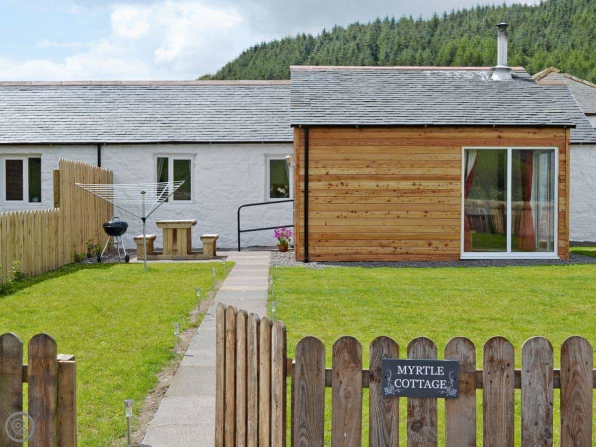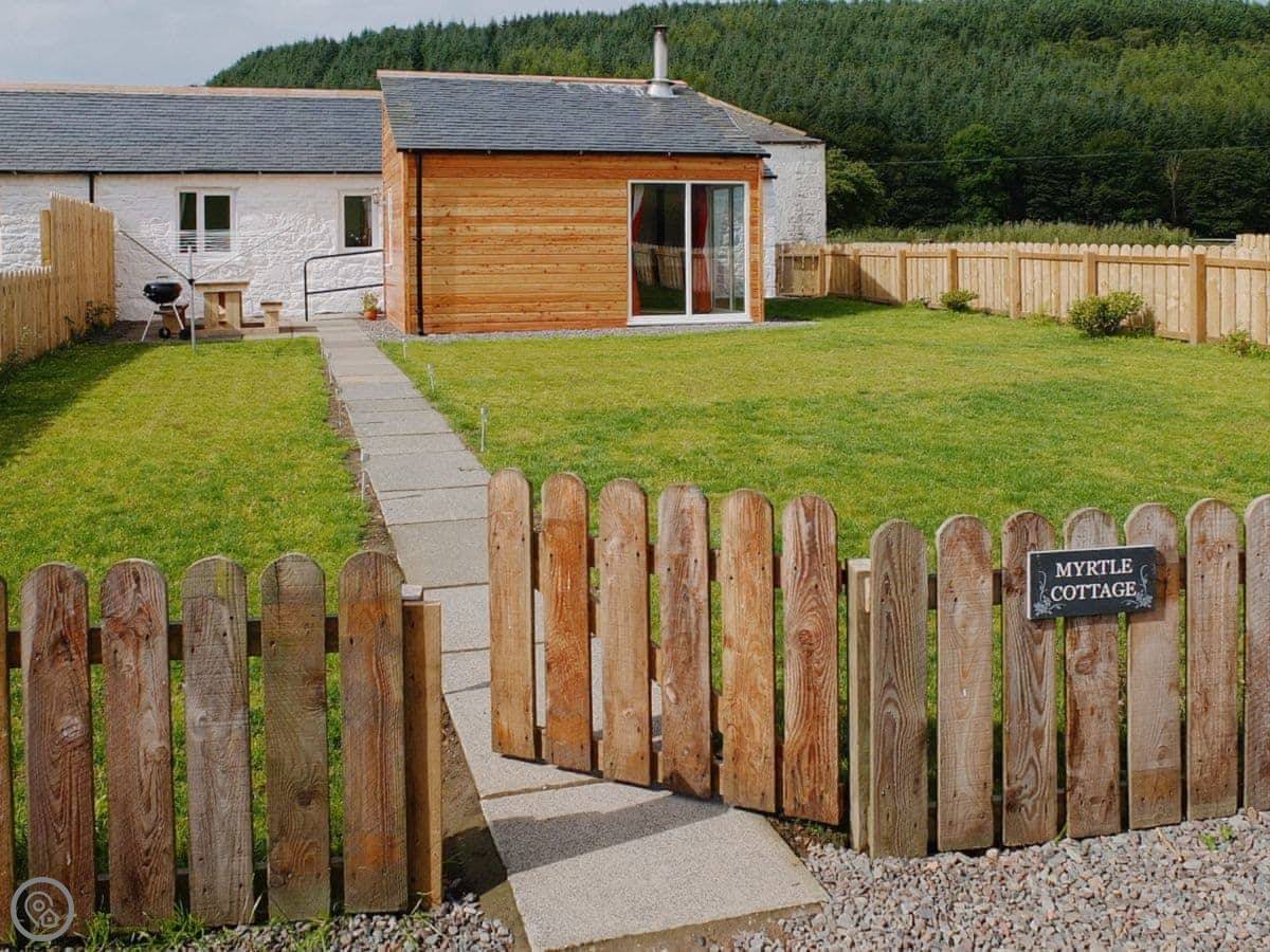 Myrtle Cottage is ours. It's a converted barn on our small farm in Caulkerbush, near Dalbeattie. You're about a mile off the main road up our private track, so it's very quiet. You'll see us about, but you have your own space.
