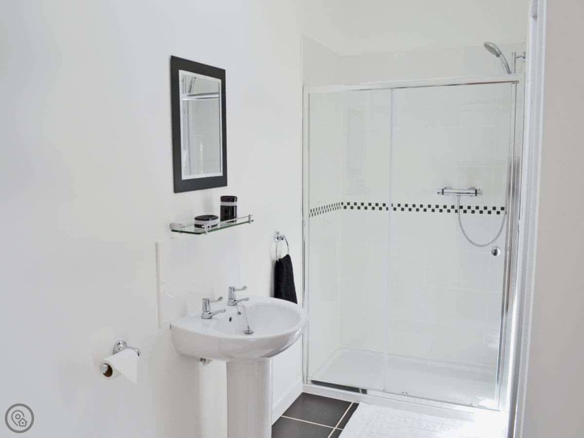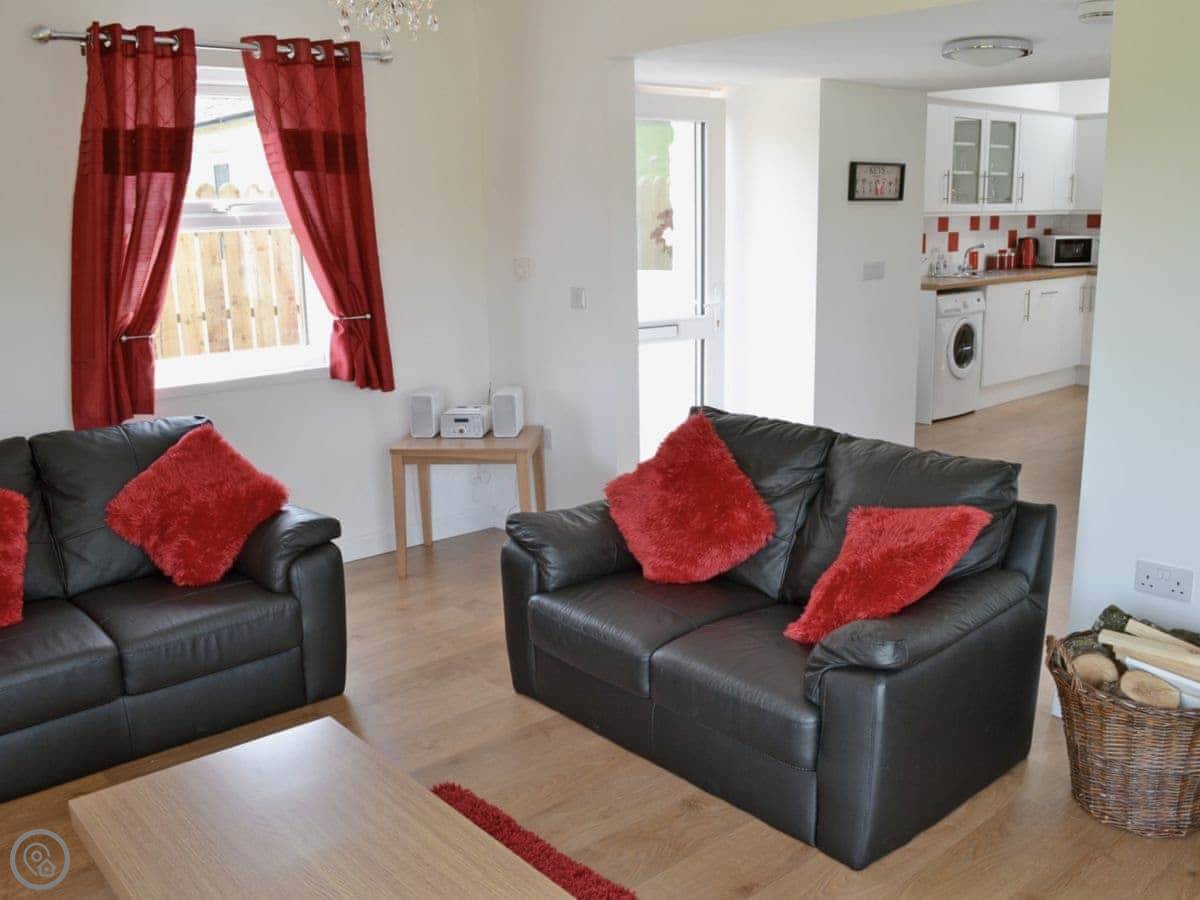 It sleeps four in two bedrooms. Both bedrooms have their own bathroom, which is handy. It's a 4 Star place, so it's comfortable and warm. We've got a biomass boiler so the heating is on all year if you need it, no extra charge.