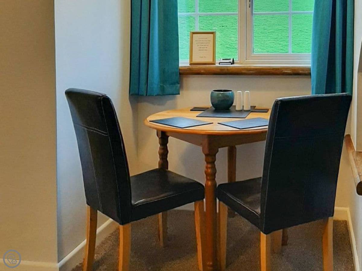 It's for two people. One bedroom, one bathroom. It's got a 3 Star rating, so it's comfortable and clean but not luxury. The kitchen and living space are all in one room. The views look out over the fields towards the River Teign.