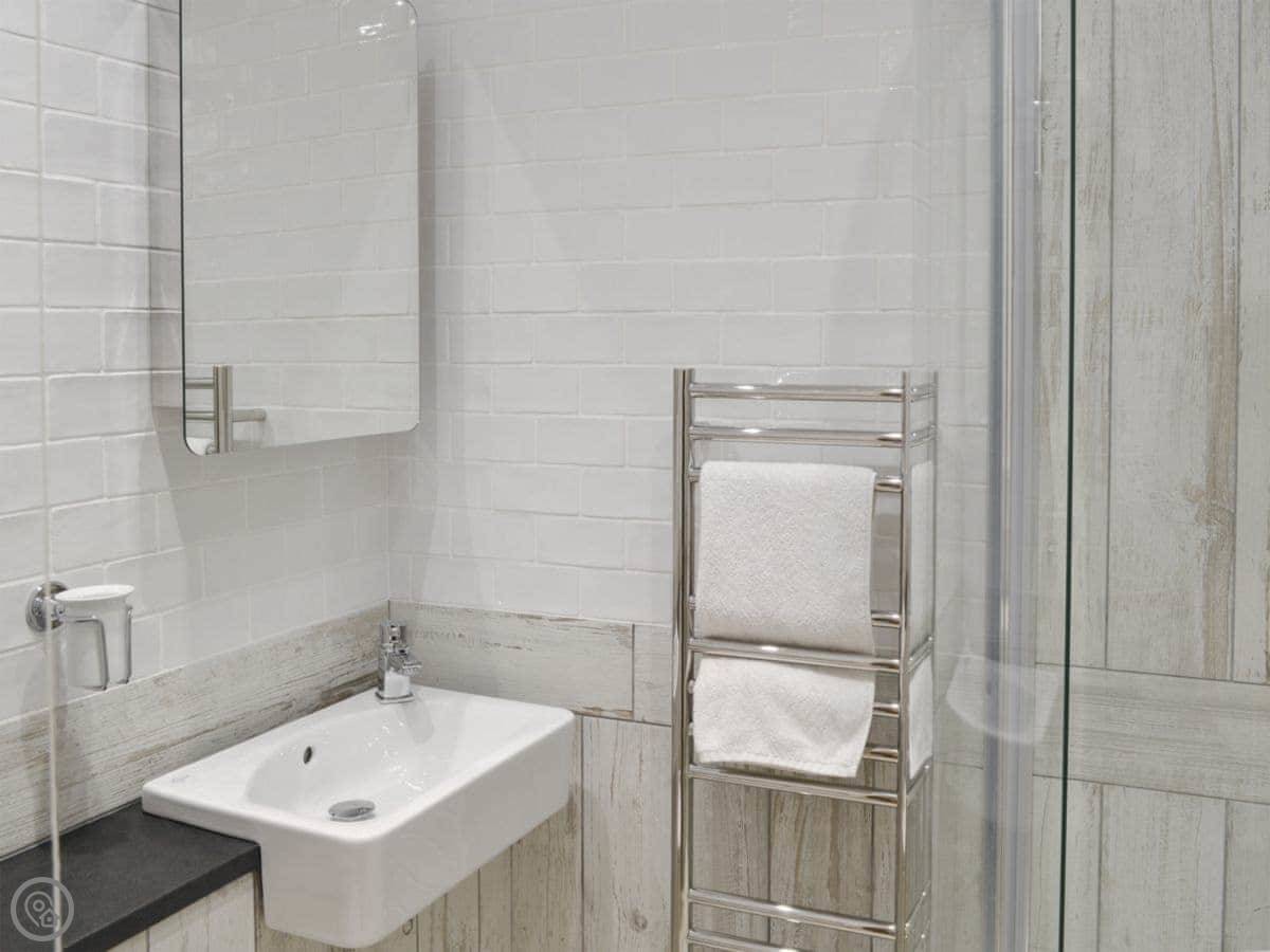 It sleeps four. Two bedrooms upstairs, one bathroom downstairs. The stairs are quite steep and narrow, so watch your step. It's got a 4 Star rating. It's comfortable and well looked after, but the main thing is the location.