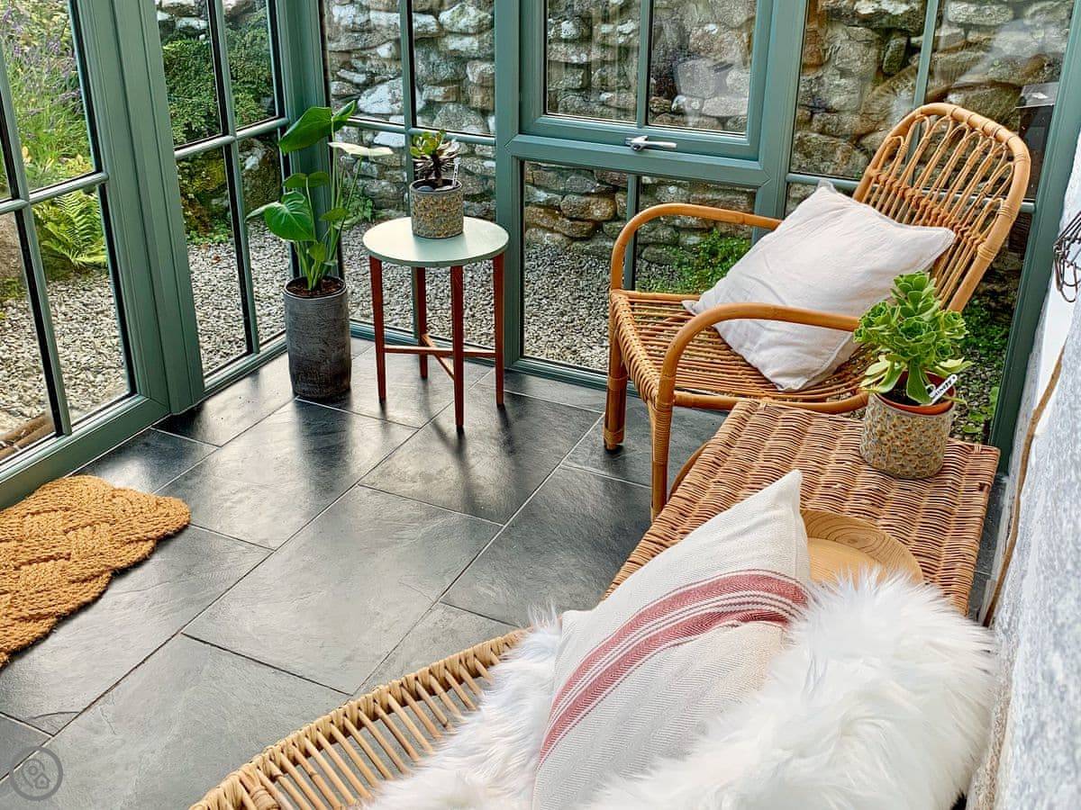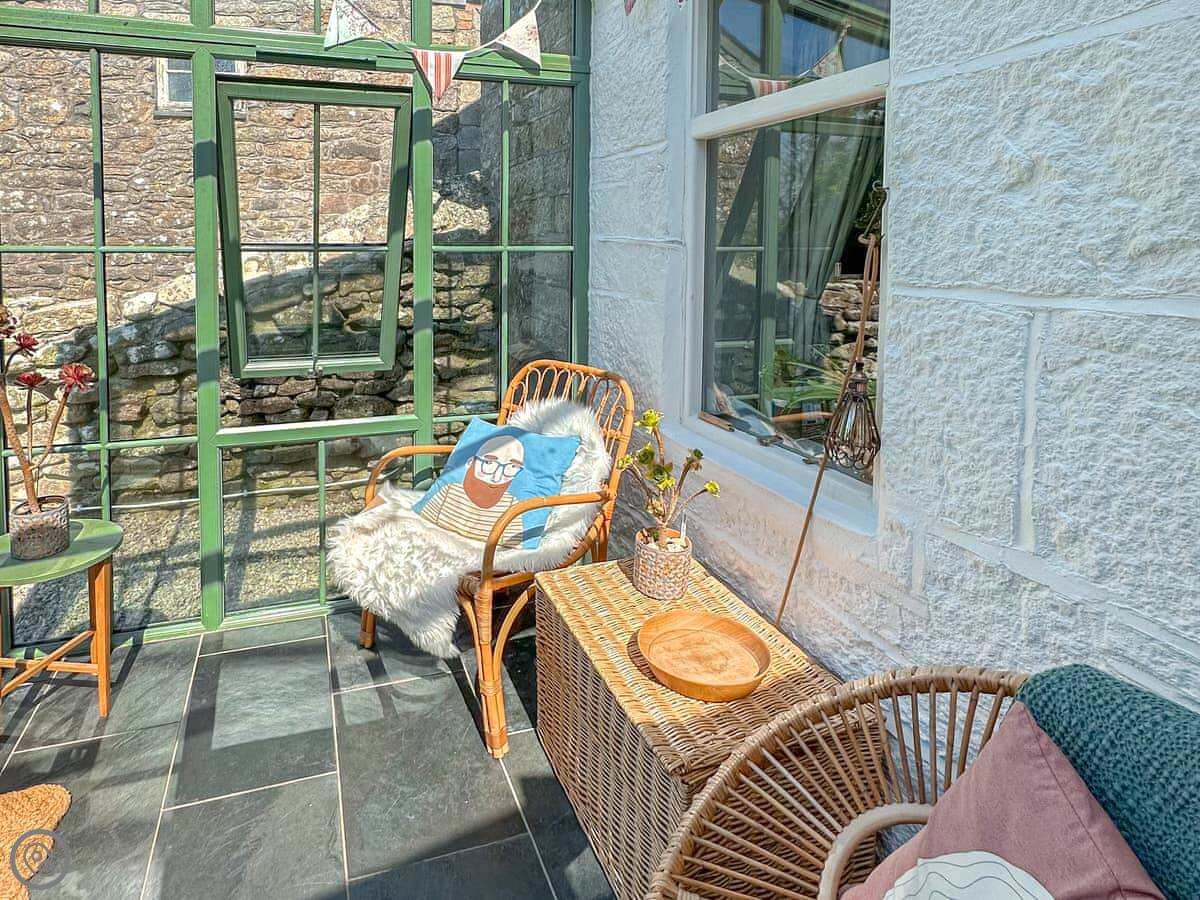 Treplevna is a tranquil, cosy and restful, traditional Cornish cottage complete with an inglenook fireplace, wood burner, sea views, a private, south-facing garden and conservatory, coast path access and parking. The first generous basket of logs, welcome goodies, toiletries and bedding and towels are all included. The cottage is perfect for walkers, dog lovers and families with young children. Blackout blinds and children’s utensils are available, and a travel cot and highchair can be provided on request. The kitchen has a microwave, integrated washer/dryer, dishwasher and Nespresso coffee machine, with eco-friendly products included. Sky TV and superfast Wi-Fi are also provided. There is even an outdoor tap in the enclosed back patio for washing dirty doggies or muddy wellies.