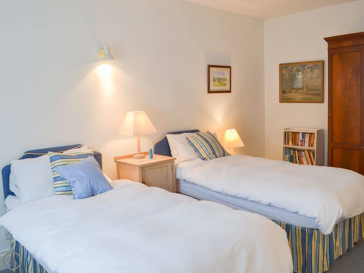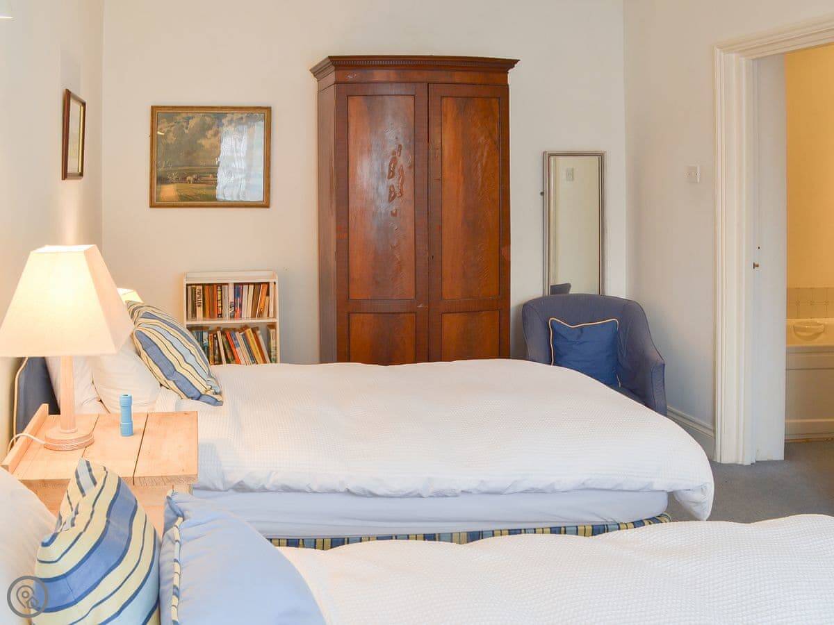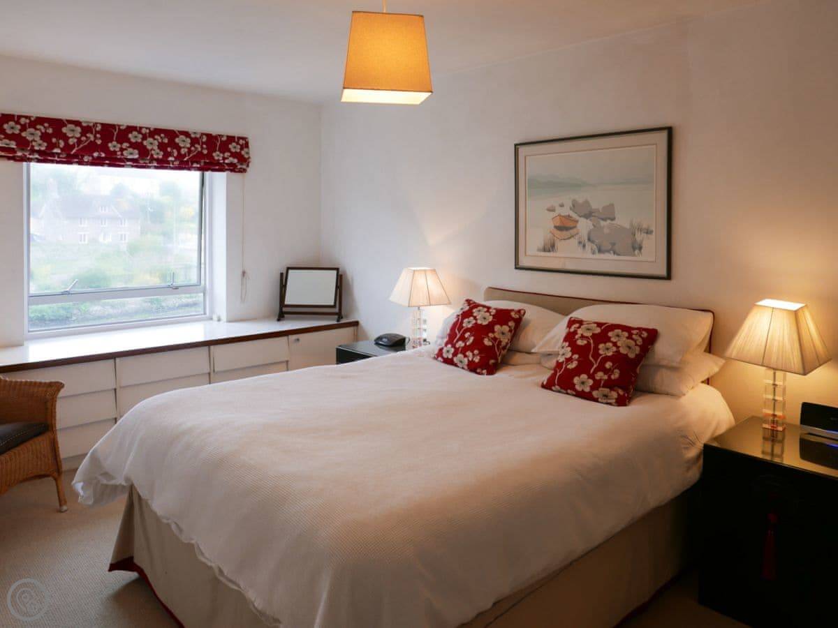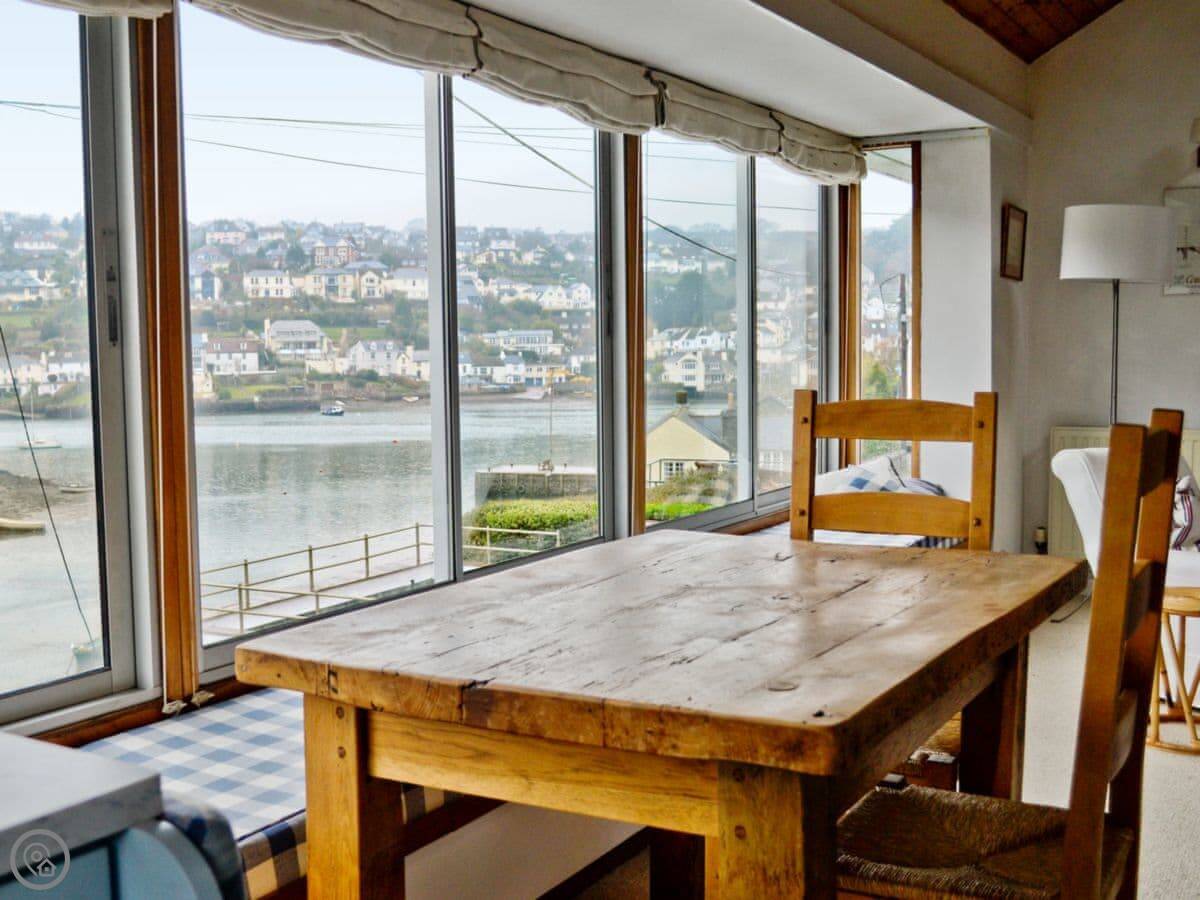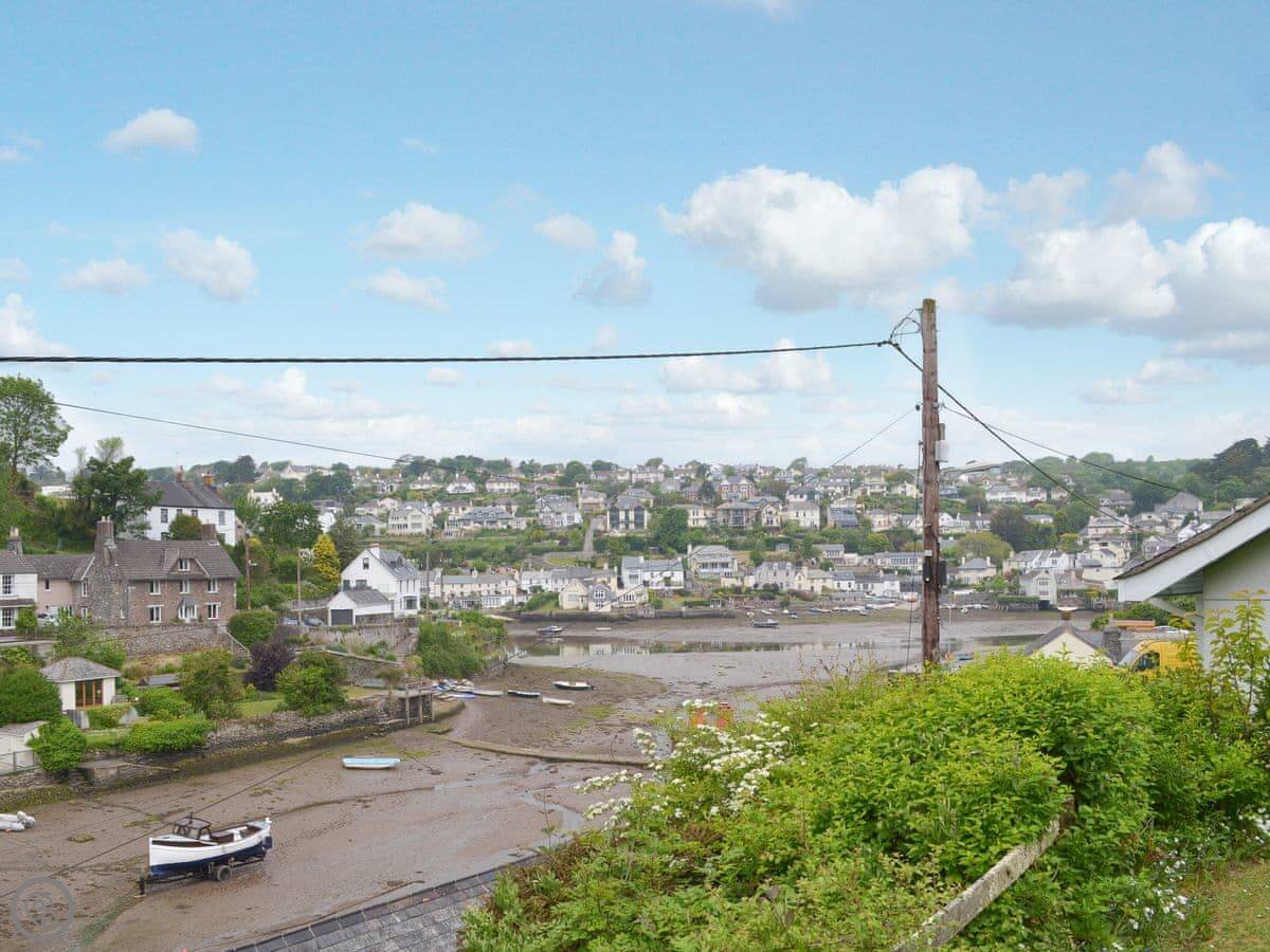 The living room is upstairs. It's laid out that way for the view. You can see the creek and the River Yealm from there. The garden is a good spot too, you can watch the boats on the water. It's a quiet village. There's National Trust woodland right on either side of the place.