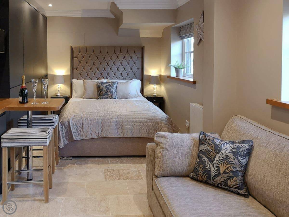 The White House Studio is a flat attached to our house. It's ours, we live next door. You get a king-size bed, a big shower, a sofa and a kitchen with a dishwasher. There's parking on the drive.