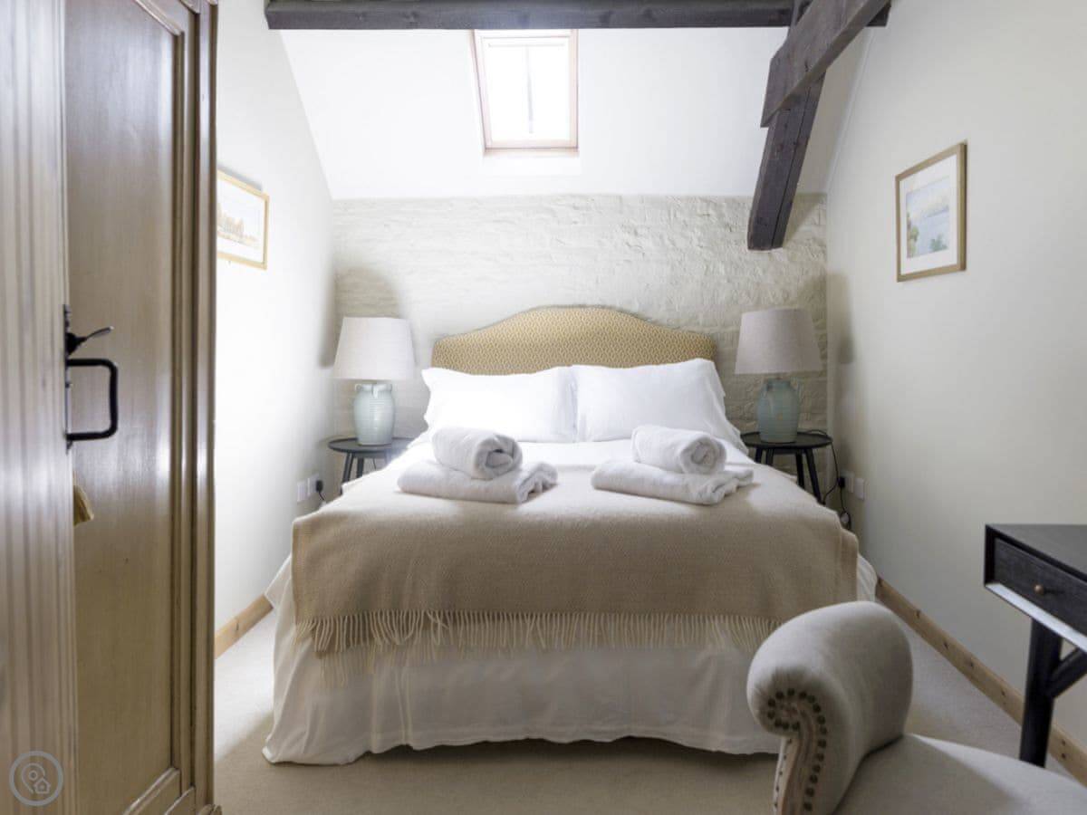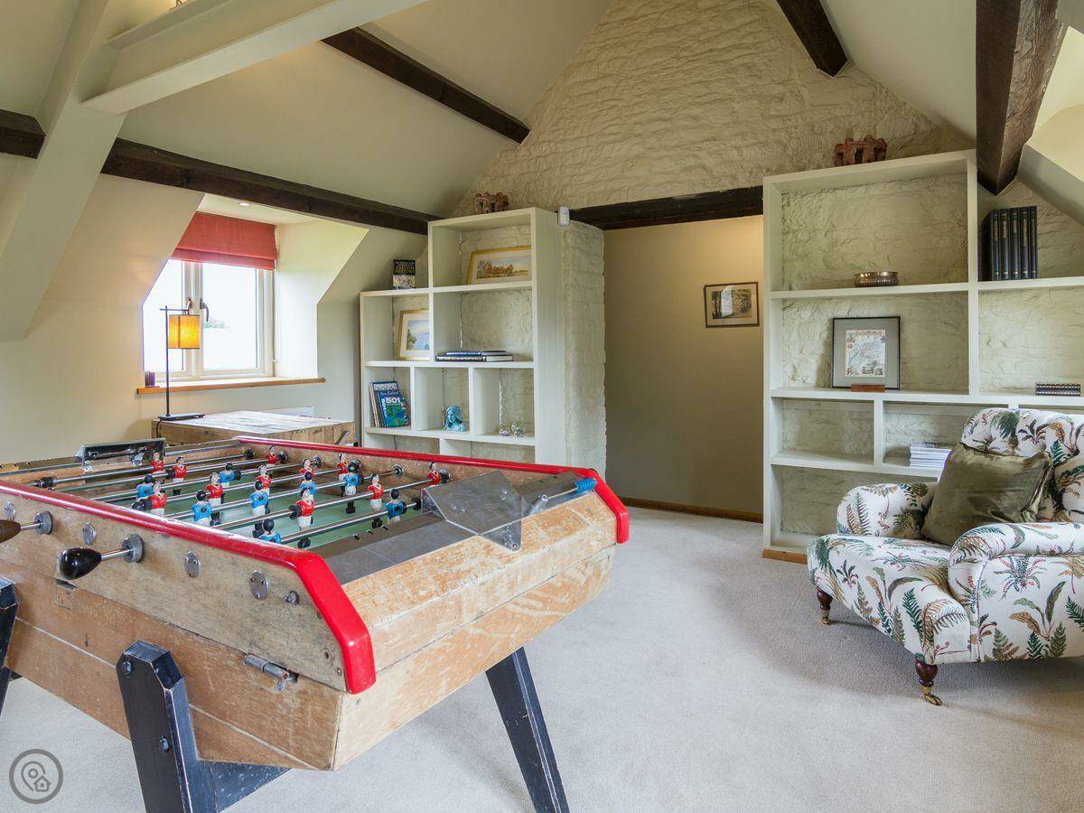 The Long Barn is in Ampney Crucis. That's a village near Cirencester. It's a converted barn, so it's long and low. You can see the old beams in the ceilings. It's at the end of a farm track, so it feels properly out in the countryside.