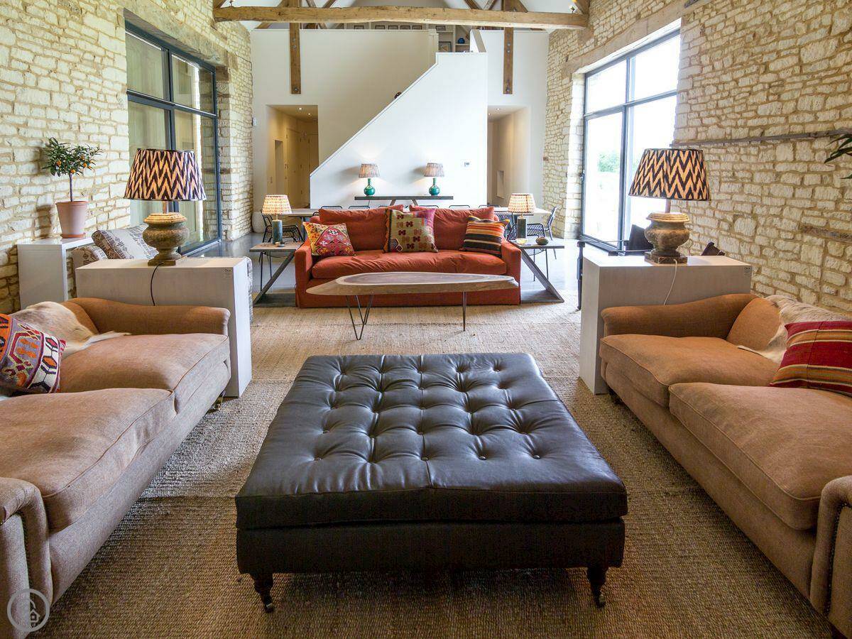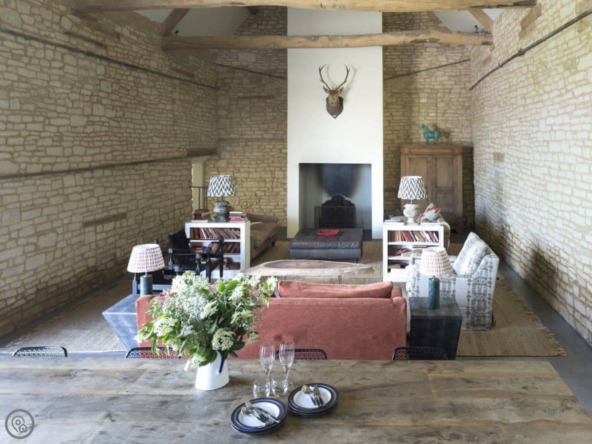 The Cotswold Barn is near the village of Ampney Crucis. It used to be part of a working farm on a big estate. It’s a barn conversion, so the ceilings are high inside. It sleeps eight.