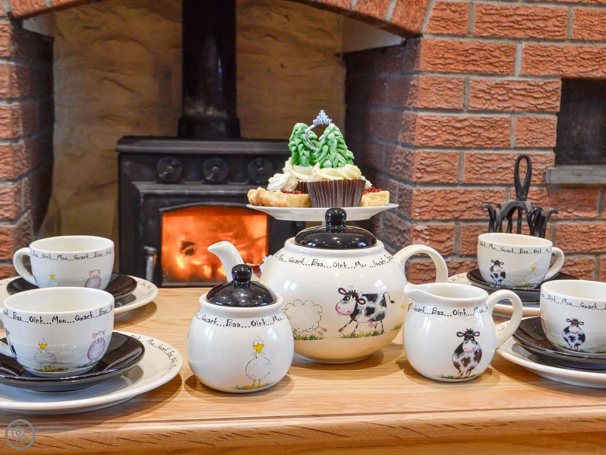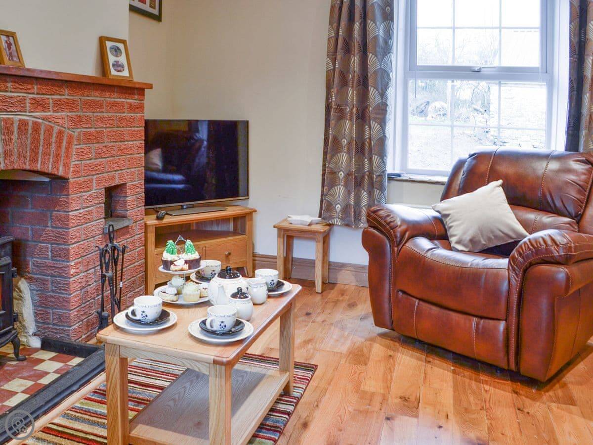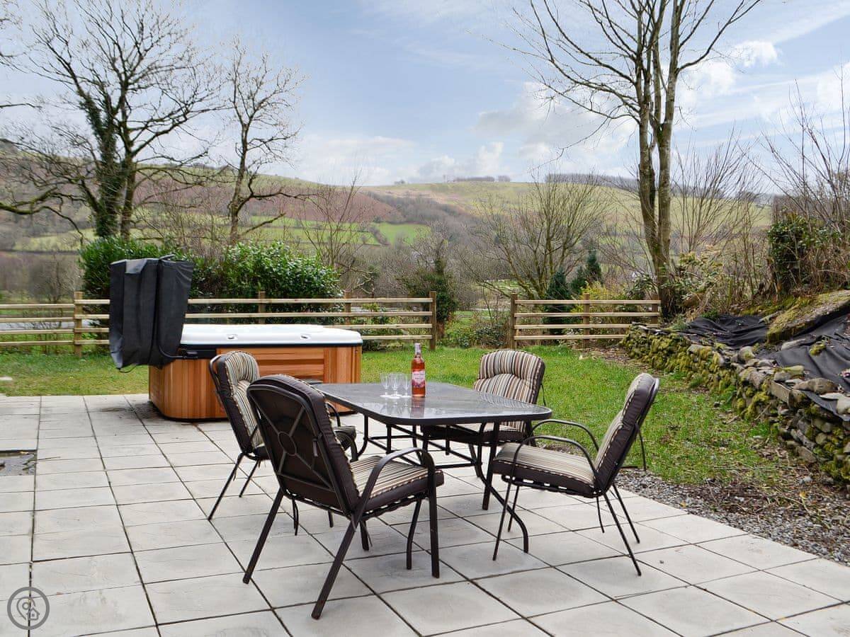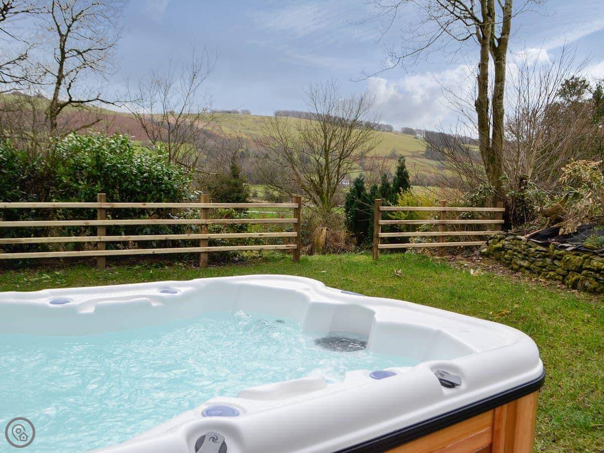 There's a wood burner in the living room for cooler nights. Patio doors open out to the garden. The hot tub is out there. The garden is yours to use.