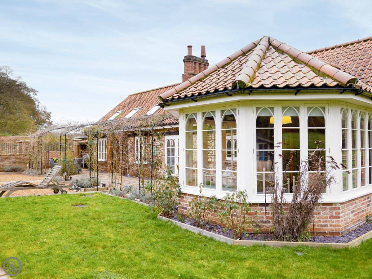 The Sedgeford Hall, built of local sand-coloured brick was built in the reign of Queen Anne, and completed in 1713, with further additions throughout the centuries; it now includes a heated indoor swimming pool, open fires and wood-burning stoves for the colder winter months, beautiful, enclosed gardens and numerous estate walks, with lakes, woods and parkland.