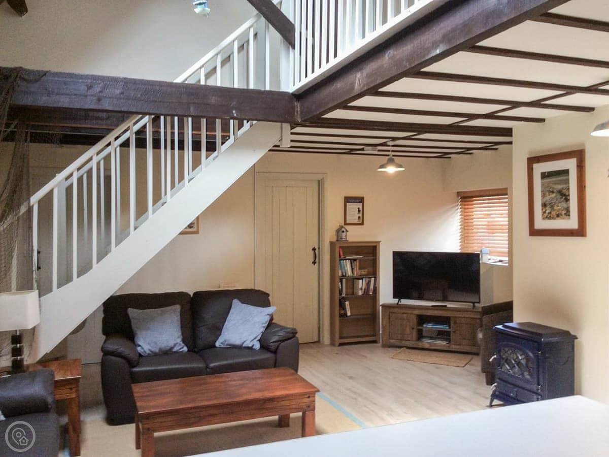 It sleeps six, with three bedrooms and two bathrooms, which makes it easier with that many people. One bathroom and a bedroom are on the ground floor. It's got a 4 Star rating, so it's comfortable and well looked after. The main living area is open plan.