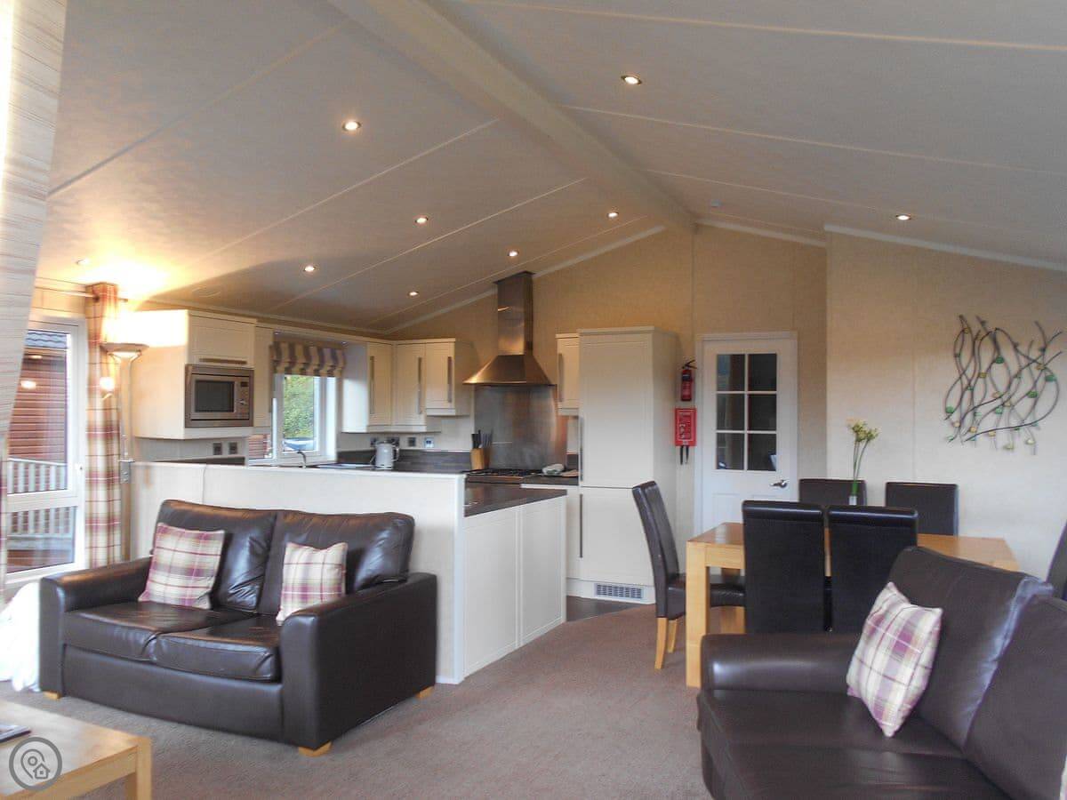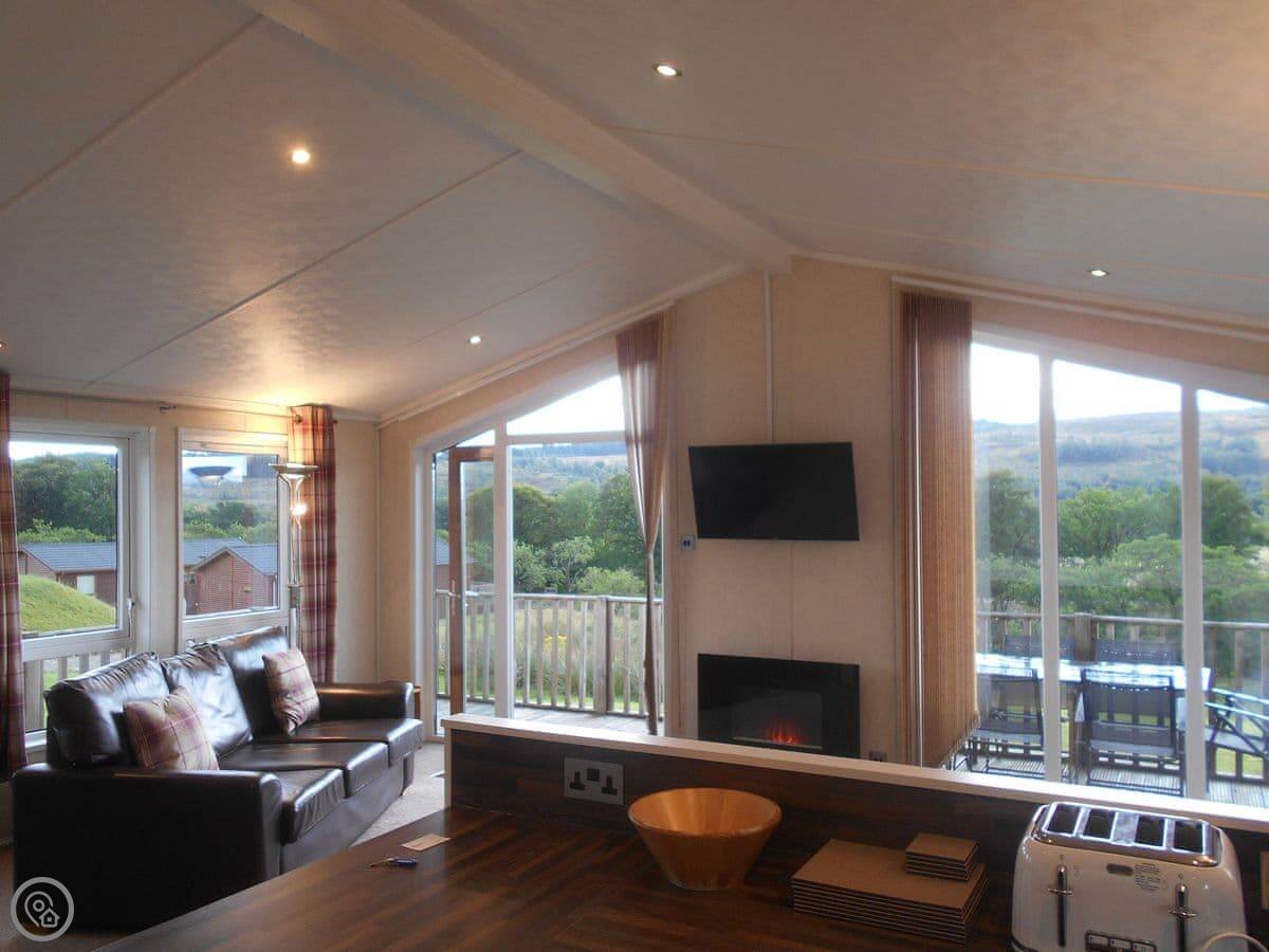 Situated in an elevated position with views over the mountains and the Caledonian Canal, is this executive, three bedroom, detached lodge. The lodge is equipped to a very good standard throughout, including a fitted kitchen with a dishwasher and fridge/freezer, full central heating, free Wi-Fi and a 32" flat screen TV in the living room. The layout of the lodge offers guests stunning views through the glazed gable from the living room overlooking the countryside and the canal. To the rear of the lodge is a master kingsize bedroom with an en-suite shower room, a second kingsize bedroom and a twin bedroom served by a bathroom. Outside there is extensive decking to enjoy those beautiful evenings. Within the grounds there is a shared utility room and a children’s play area.