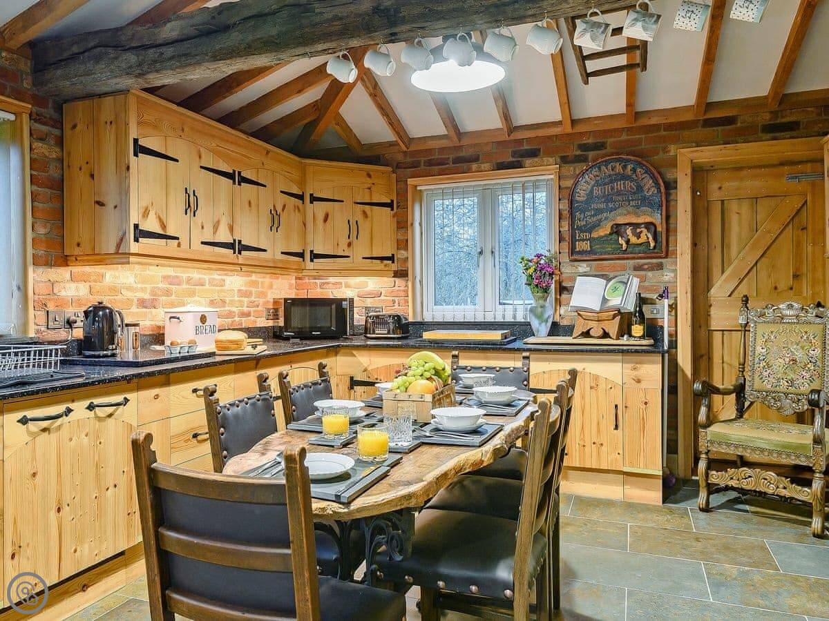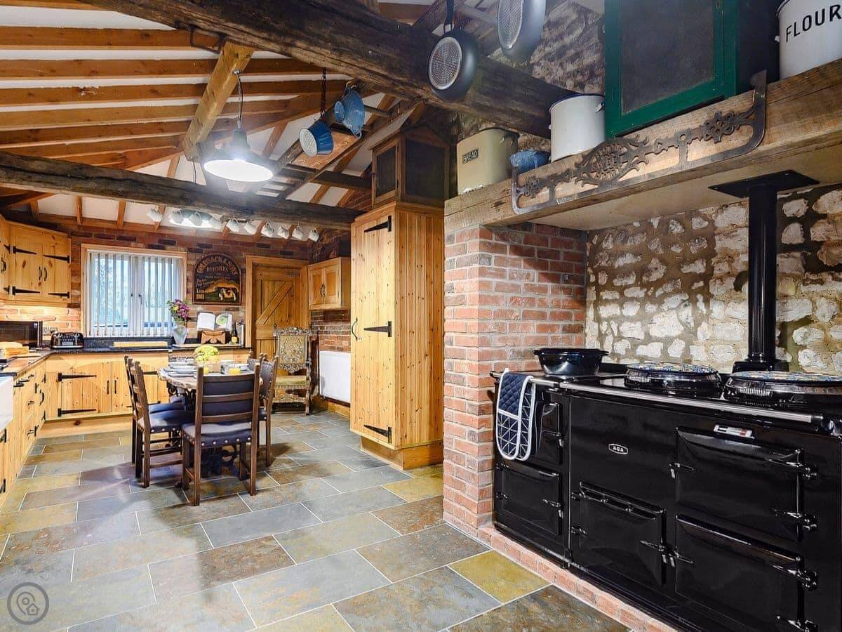 The main thing is the space. The kitchen is big and has an Aga, plus two separate electric ovens if you're not used to an Aga. There's a dining room, a sitting room with a wood burner, and a porch with chairs. It can feel a bit spread out.