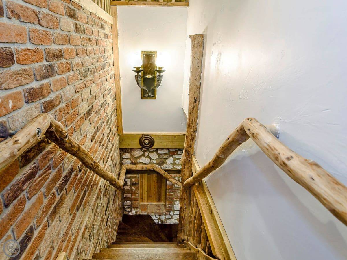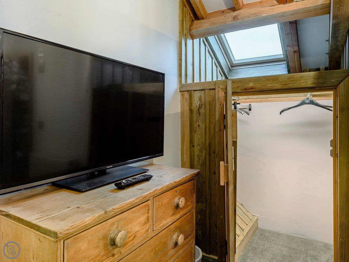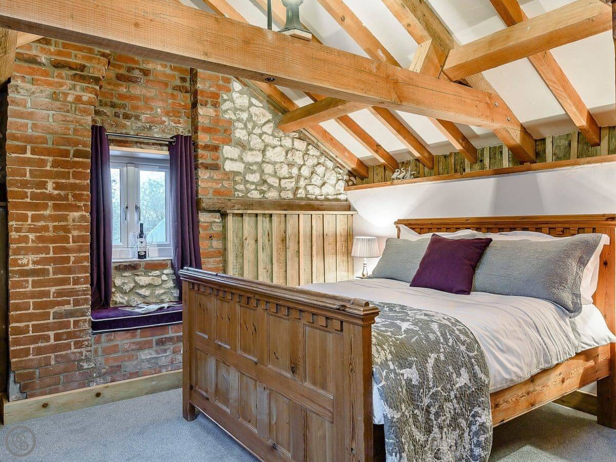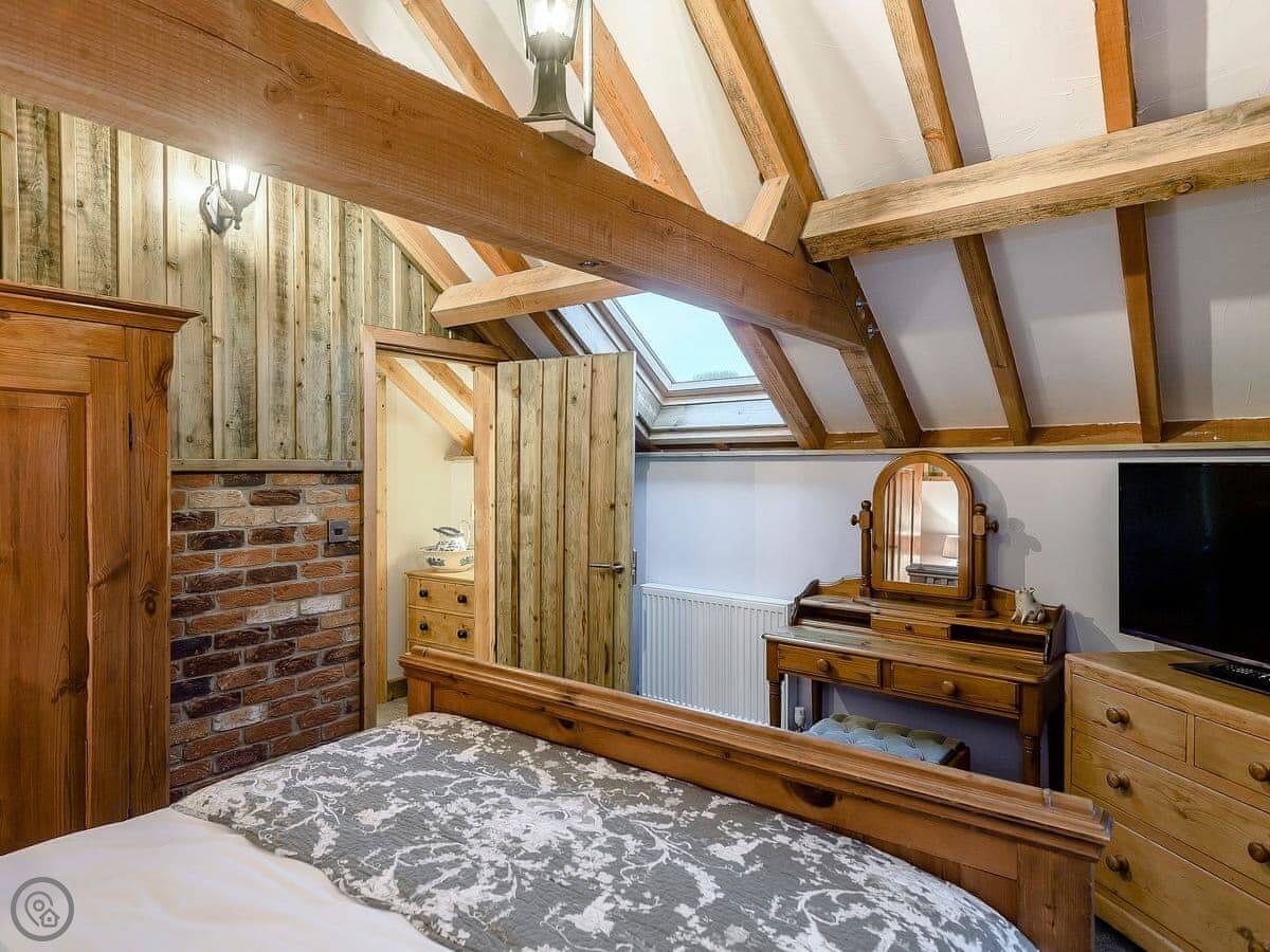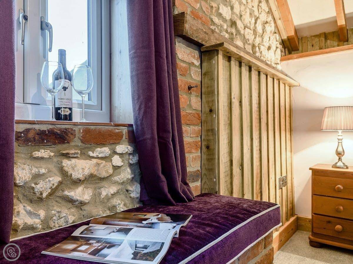 It sleeps six people in three bedrooms. There are two bathrooms, one downstairs. It's got a 5 Star rating, which means it's renovated to a high standard. It was originally built in 1750 as two houses for farm workers. The owners have used a lot of reclaimed materials, including beams from the 1400s.