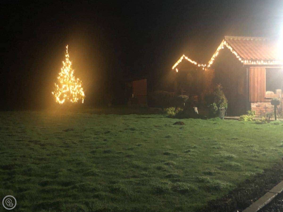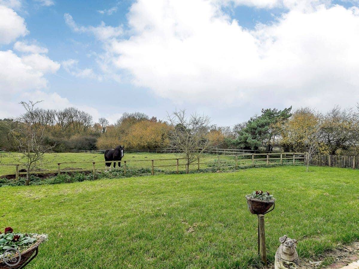 The garden is peaceful. You'll see hares and deer in the fields around it. It's not overlooked.