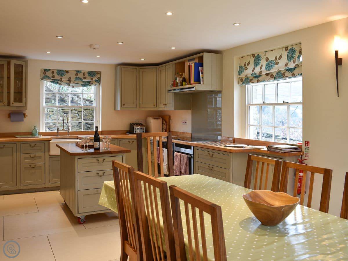 Sitting in an elevated position, it commands fabulous views from its large windows and extensive gardens. Providing spacious accommodation, this beautiful cottage has two living rooms with flagstone floors, kept warm by underfloor heating and two wood burners. Both living rooms provide a great social space for a mixture of ages and interests. Step through into an open plan kitchen/ dining area, with hand crafted fitted units, complete with modern appliances. The dining area is the perfect place to gather, and looks out onto the gardens and views beyond. Upstairs there are four large bedrooms and two bathrooms.