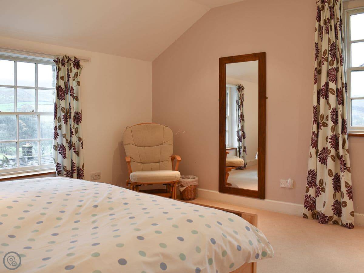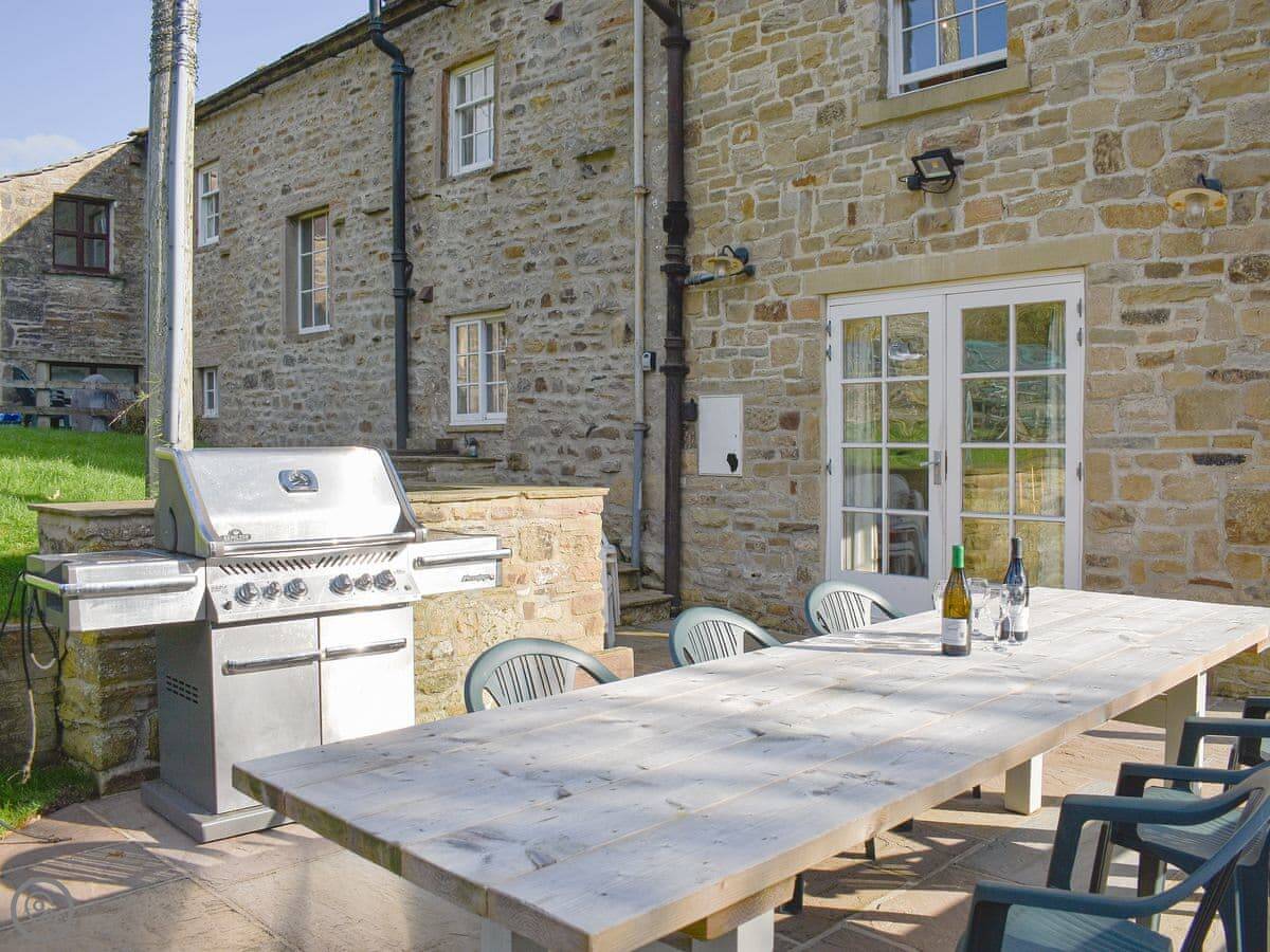 The rolling gardens provide a wonderfully relaxing outdoor space, with a combination of lawns and terraces. There is a small stream running through the bottom of the garden, and a large decking area with furniture and BBQ. From here you can enjoy wonderful views of Coverdale and Horsehouse’s historic church.