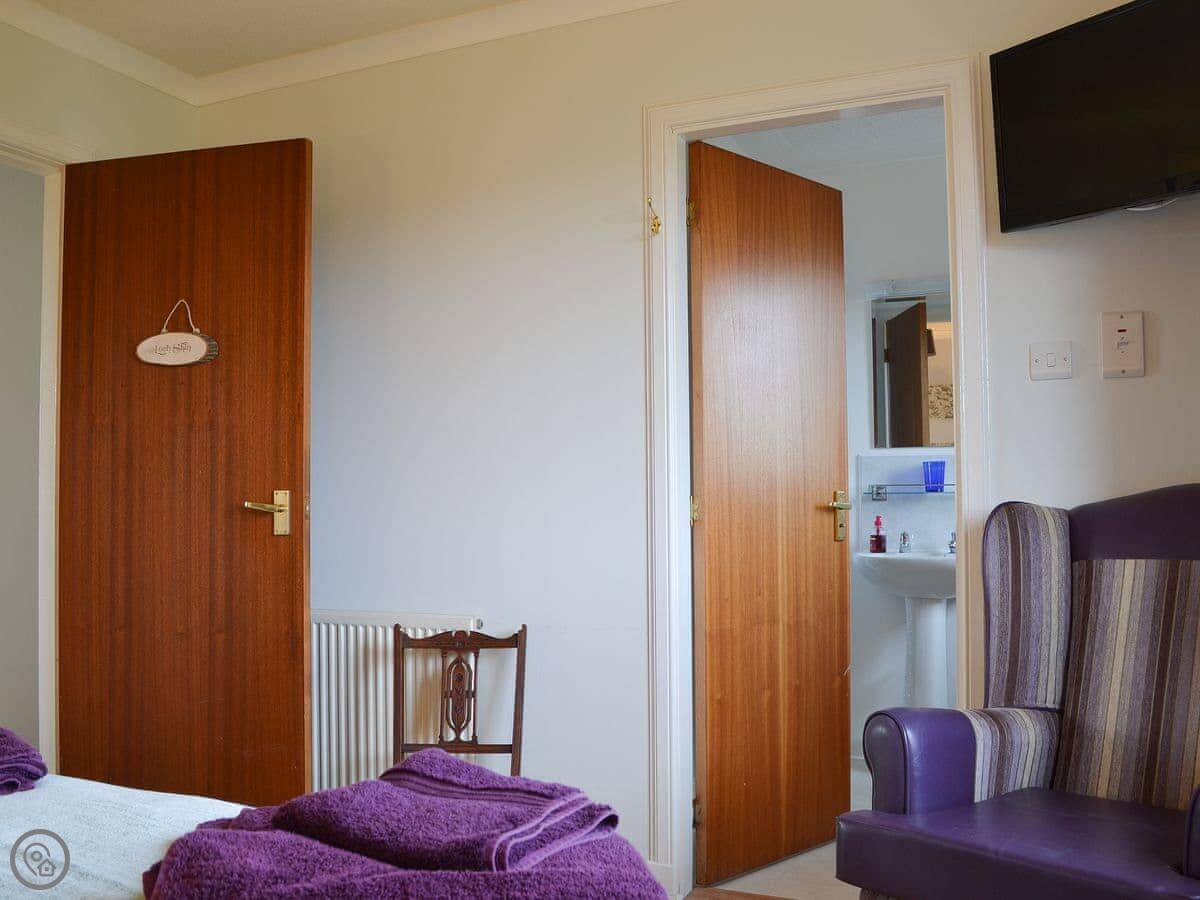 It sleeps seven in four bedrooms. There are two bathrooms. Everything is on the ground floor. The rooms are all a good size. The living room is particularly large, with an open fire. The kitchen is farmhouse style with an island and a big table by the window.