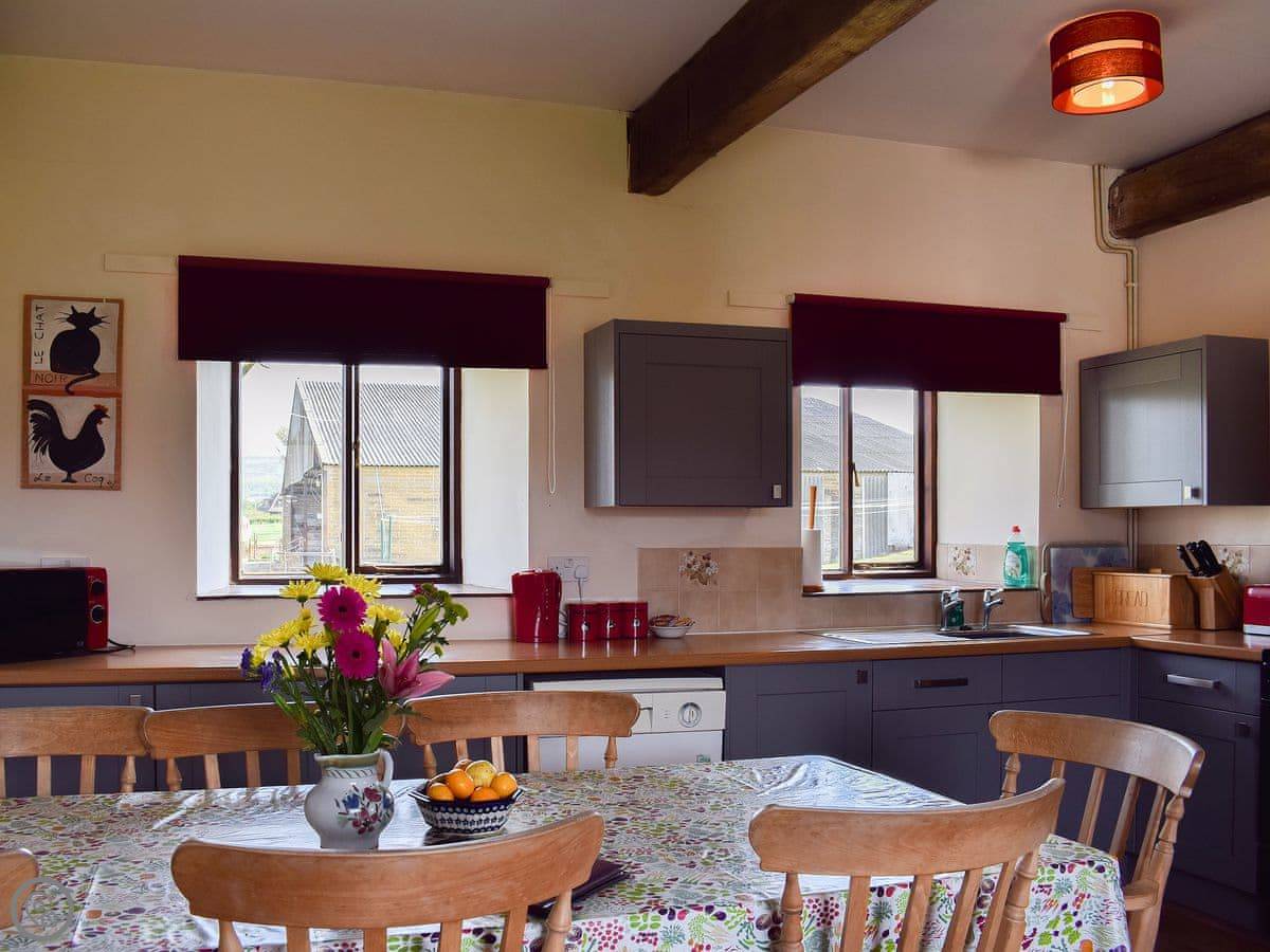 Facilities are straightforward. It's open plan downstairs. There's a washing machine, dishwasher, TV, and WiFi. Bedding and towels are included. There's an electric vehicle charger and parking. You can bring two dogs.