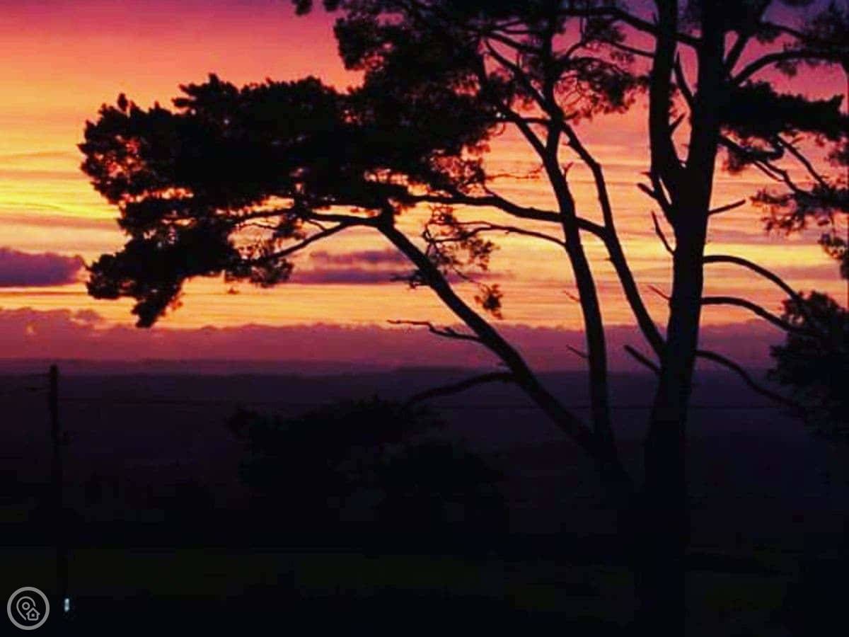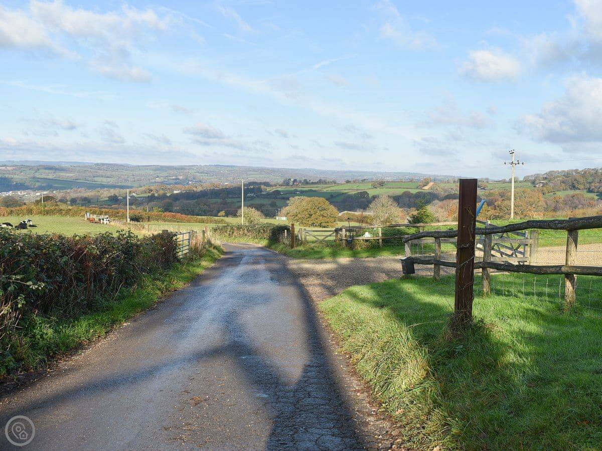 Shepherds Knapp Lodge is on Raymond's Hill, just outside Axminster. It's a detached lodge, so no neighbours on the other side of the wall. The views from here are really good, just fields and hills.