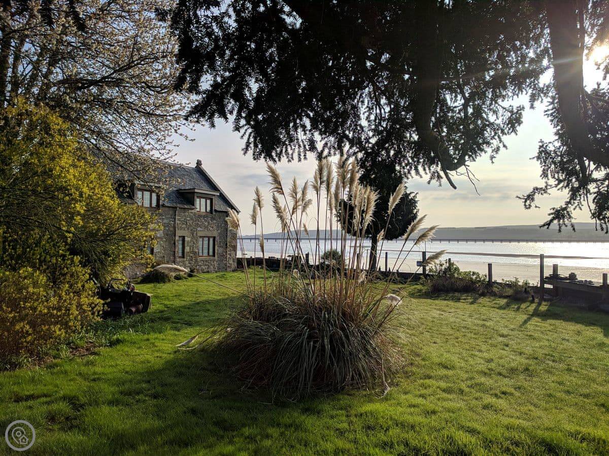 St Brighs enjoys a stunning location, perched right on the shores of the renowned Cromarty Firth. Originally a boathouse and built of solid stone in the 1860s, St Brighs has been extensively modernised, whilst retaining much of its unique historic character. The gardens surrounding the cottage lead immediately onto the shoreline, which plays host to a wide and fascinating variety of animals and birds. It is completely secluded, ensuring that nature is your sole companion when you stay in this very special place. An original solid wood door opens onto the kitchen/dining room. A large wood burner nestles in the corner, providing a warm and cosy ambience. The kitchen is extremely well-equipped, with built-in units and appliances. The main living room at the rear of the cottage has French doors which open onto the garden and directly onto the shores of the Cromarty Firth. The staircase, made of Douglas fir, leads up to the first floor. Here there are two bedrooms and a family bathroom. One has a kingsize bed, with a beautiful original ornate window looking out across the water. The second has twin 3ft beds, with the window looking out across the garden to the water beyond. The country gardens surround the property, with a solid fence protecting the garden from the water’s edge. A gate opens directly onto the shoreline, which is tidal. Although fenced off, small children must be supervised at all times.