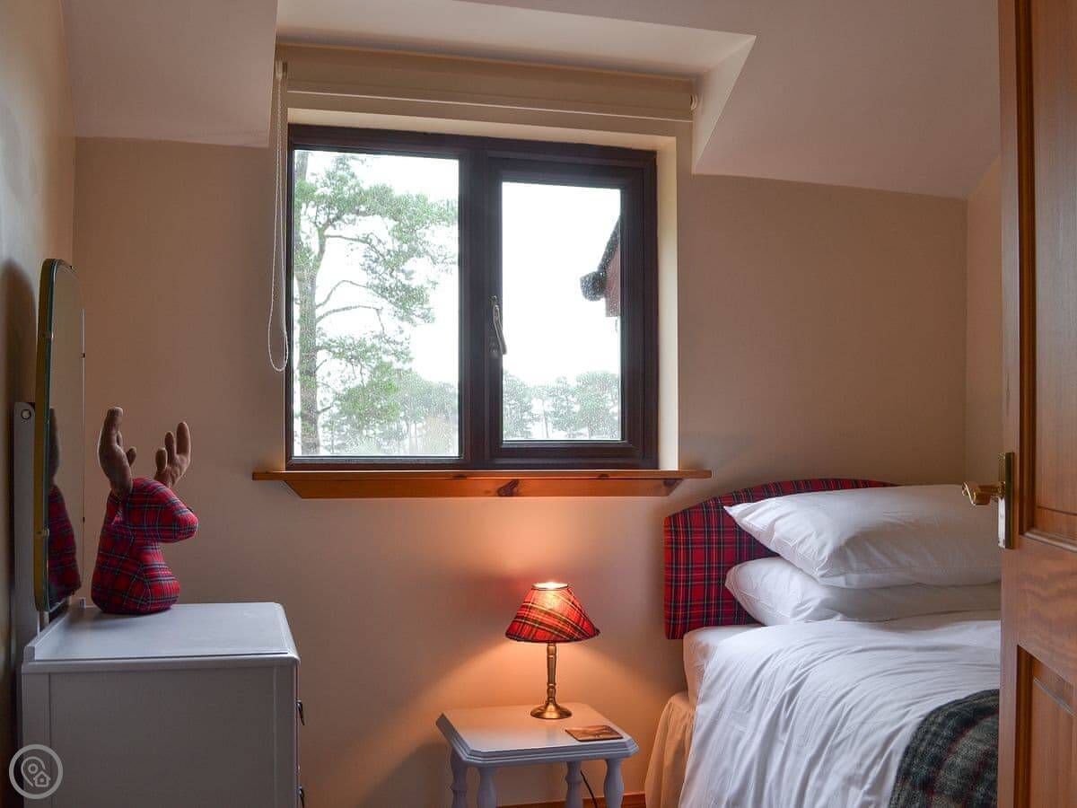 It’s got a 4 Star rating. It's comfortable, not a show home. The garden is enclosed and big. There's a private bit of pinewood right there with red squirrels and deer. You often see them from the kitchen window.