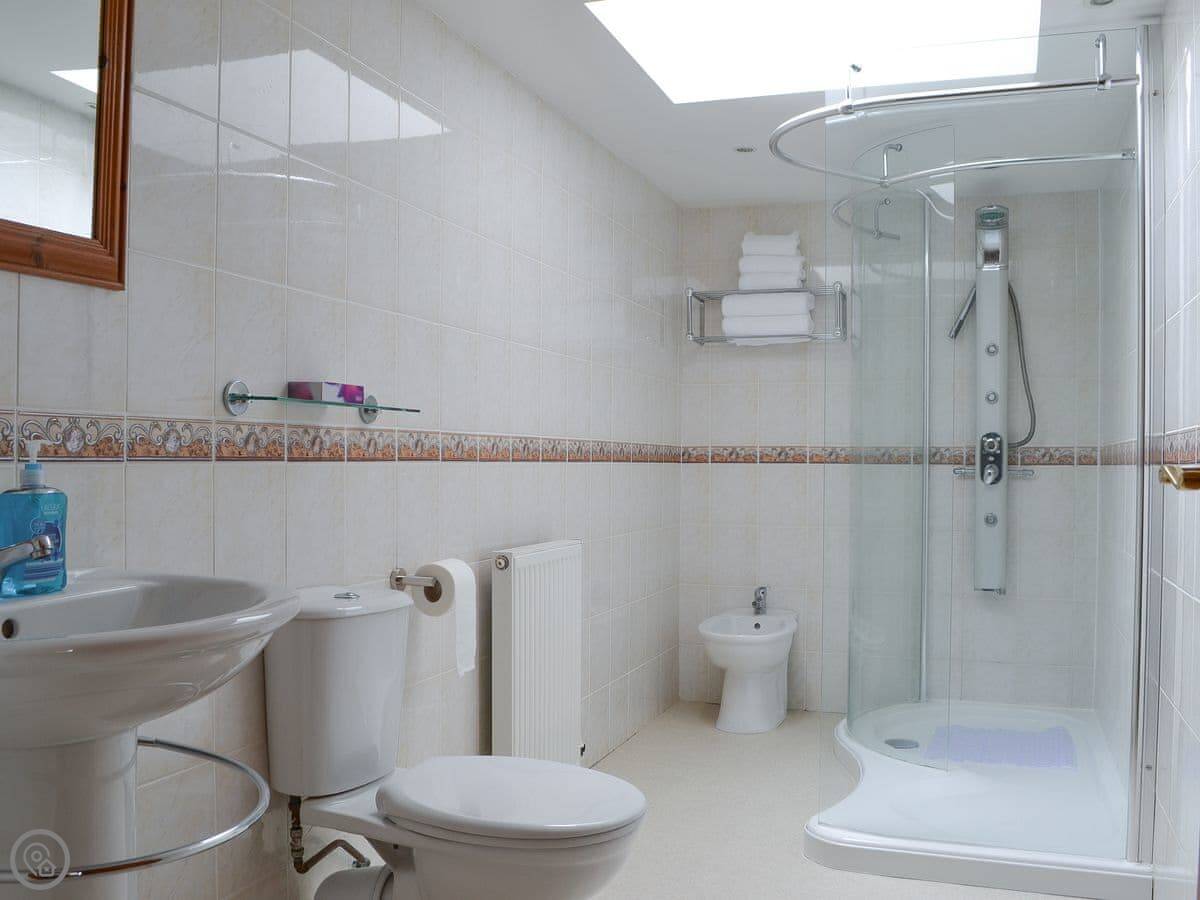 For facilities: there's parking for four cars. Wood-burning stove in the living room. Washing machine, dishwasher, WiFi, TV. Bedding and towels are included. We've got a cot, highchair, and stairgate if you need them. The entrance and main rooms are on the ground floor and are wheelchair accessible. We take up to two dogs.