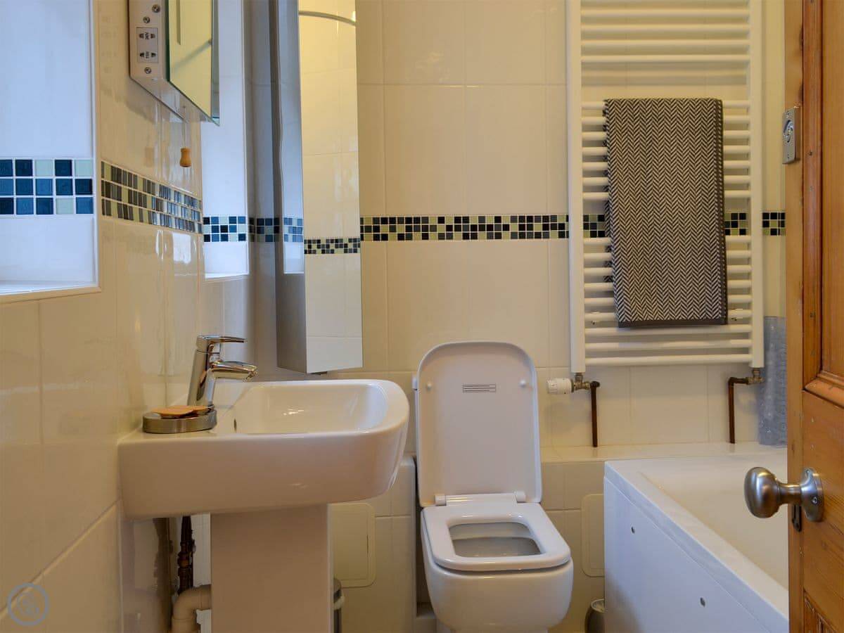 Facilities are all there: washing machine, dishwasher, wifi, bedding and towels are included. There's parking for one car on the front.
