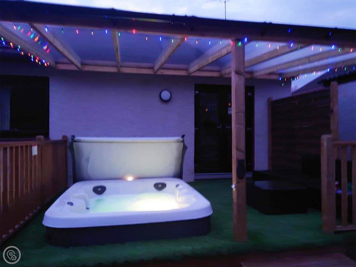 The main thing is the hot tub. It's private, under a covered roof so you can use it in any weather. We see deer and birds in the field quite often from there.