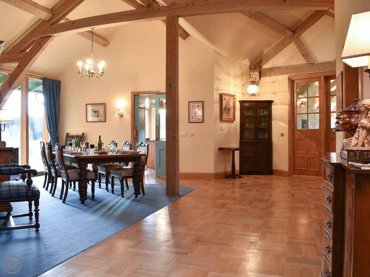 On approach from the winding driveway, you already get a feeling of how truly special this property is. Open the large wooden front door and step inside the spacious hallway, complete with dining area and exposed oak beams and parquet flooring. A warm and welcoming living room has ample space for everybody to relax. The Swedish wood burner and floor-to-ceiling windows only add to the modern features, while the stunning green oak beams add extra charm. There is an outside balcony area which can be accessed via both the living room and kitchen.