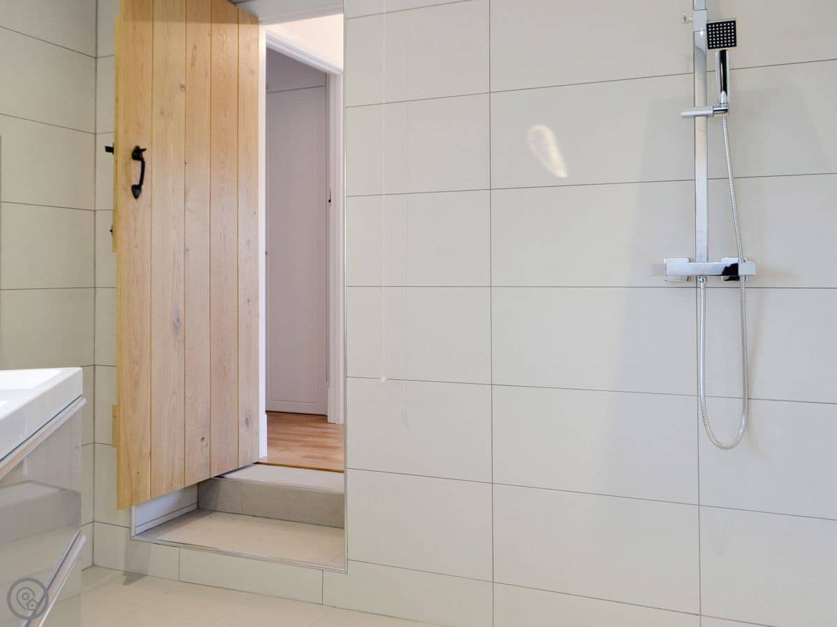 Upstairs is the bedroom with a big super king bed and a wet room shower. That’s got underfloor heating too.